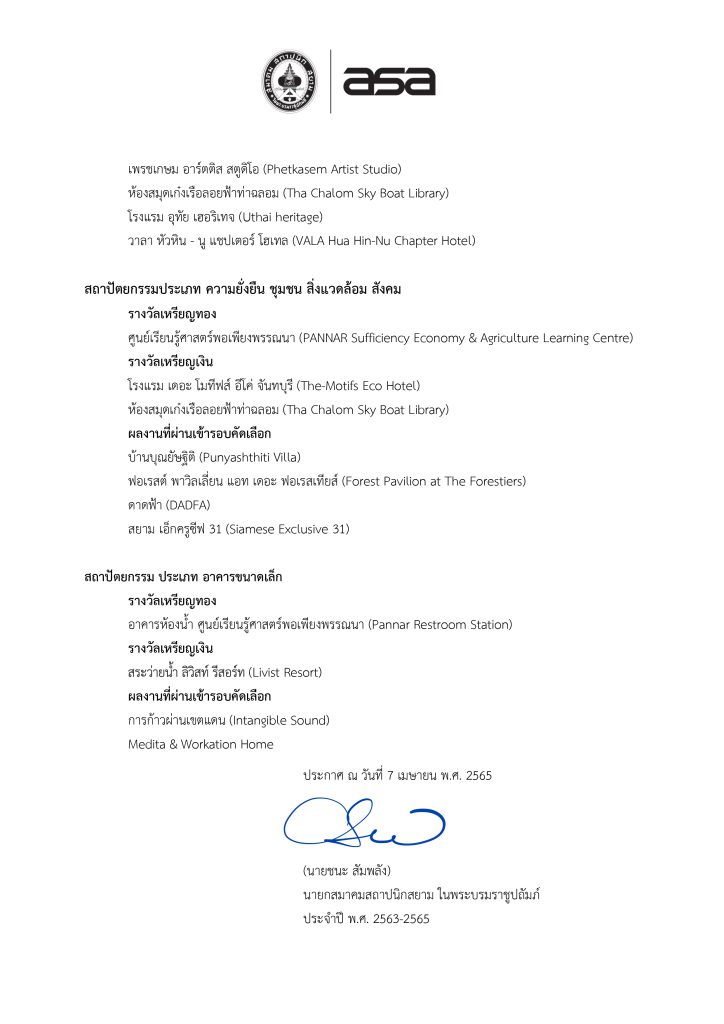 รางวัลสถาปัตยกรรมดีเด่น ปี 2565