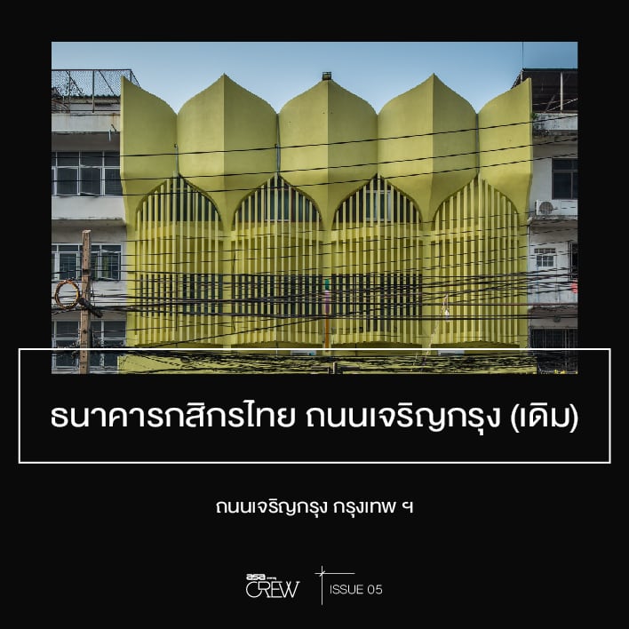 “ผมบังเอิญไปเจออาคารหนึ่งแถวโรบินสัน บางรัก พอเห็นรูปทรงคล้ายรวงข้าวซึ่งเป็นเอกลักษณ์ รู้ทันทีเลยว่าเป็นธนาคารกสิกรไทย ปัจจุบันที่นี่กลายเป็นร้านอาหารไปแล้ว ด้วยสีอาคารที่โดดเด่นคนชอบคิดว่าผมแต่งสีรูป แต่ไม่ใช่ เป็นสีแบบนี้เลย ผมย้อนไปดูอาคารนี้ใน Google Street View เมื่อปี 2559 มันมีป้ายอะไรไม่รู้เต็มไป หมด โชคดีได้มาเจอตอนที่เอาออกไปหมดแล้ว เหลือหน้าตาเดิมๆ แบบนี้นี้ก็สวยดี”