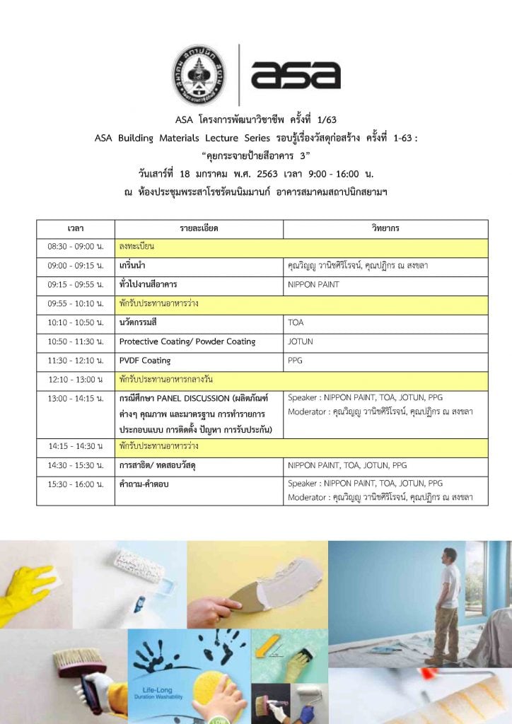 18 ม.ค. 63 | ASA โครงการพัฒนาวิชาชีพ ครั้งที่ 1/63 “คุยกระจายป้ายสีอาคาร 3” + Add to Google Calendar + iCal / Outlook export Date Jan 18 2020 Expired! Time All Day More Info ลงทะเบียน Category Material Info Seminar Share this event