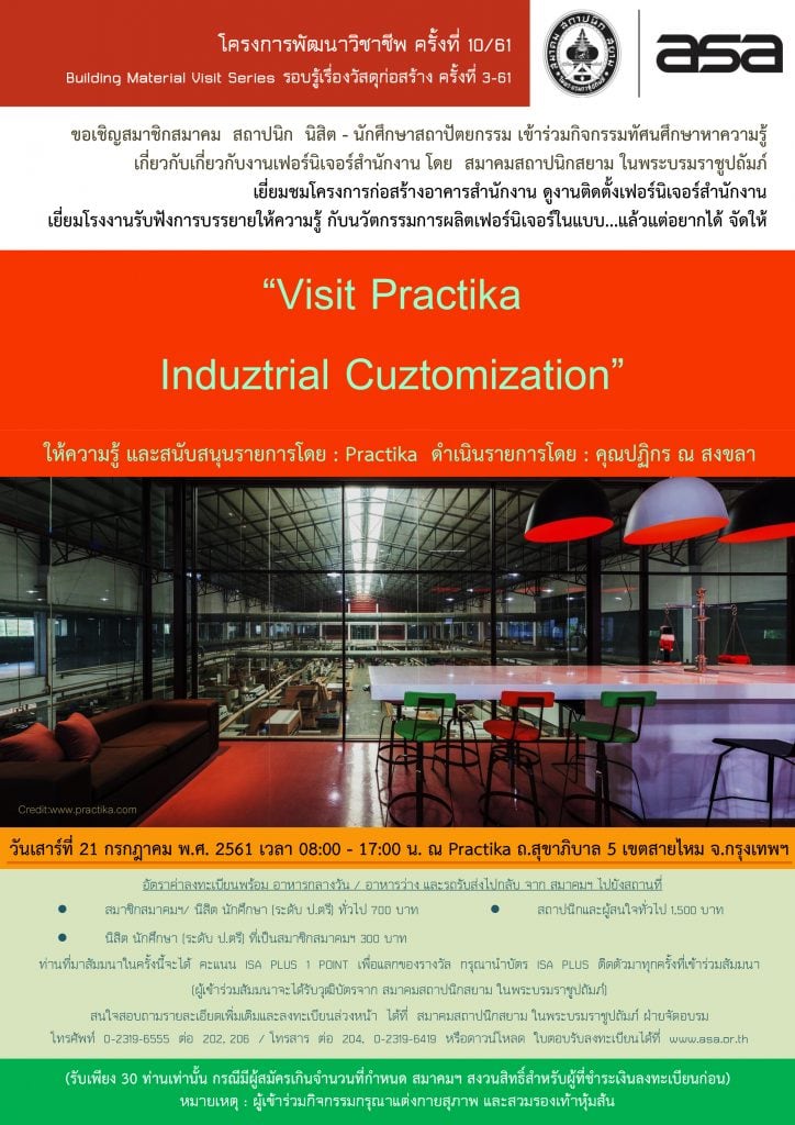 21 ก.ค. 61 | โครงการพัฒนาวิชาชีพ ครั้งที่ 10-61 “Visit Practika Induztrial Cuztomization”