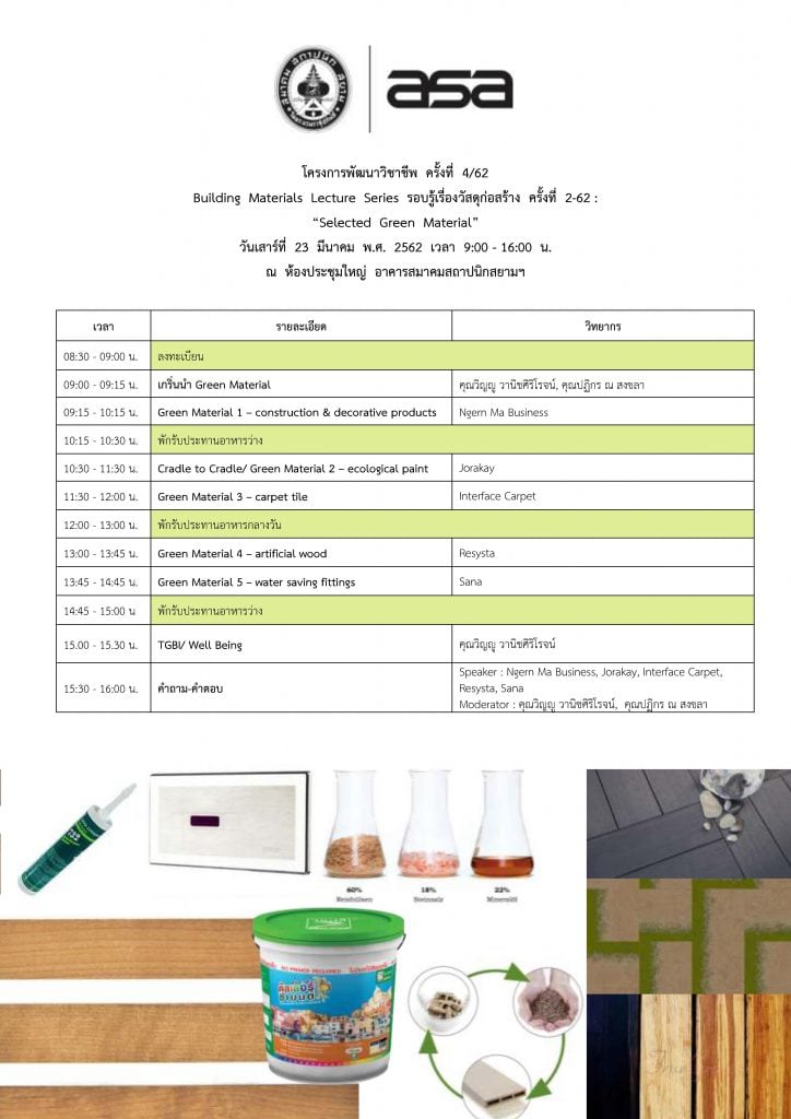 23 มี.ค.62 | โครงการพัฒนาวิชาชีพ ครั้งที่ 4/62 “Selected Green Material”
