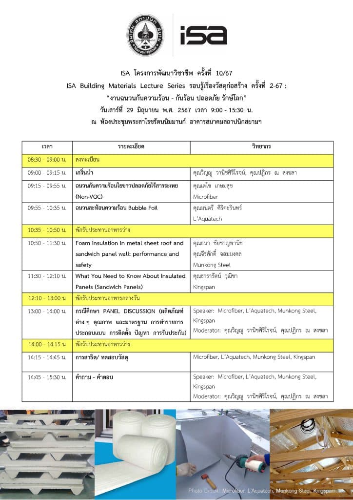 ISA โครงการพัฒนาวิชาชีพ ครั้งที่ 10/67 : “งานฉนวนกันความร้อน – กันร้อน ปลอดภัย รักษ์โลก”