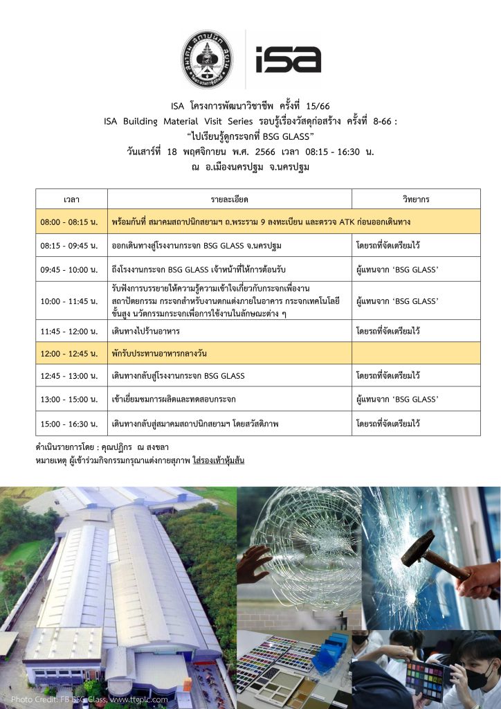 ISA โครงการพัฒนาวิชาชีพ ครั้งที่ 15/66 : ไปเรียนรู้ดูกระจกที่ BSG Glass