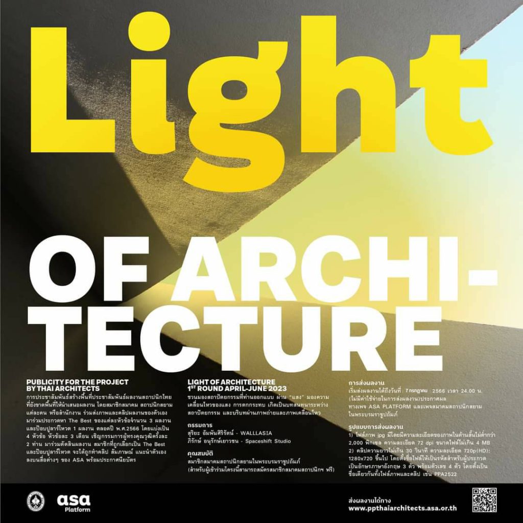 ประกวดผลงานสถาปัตยกรรม “LIGHT OF ARCHITECTURE” | 1ST ROUND APRIL-JUNE 2023 | PUBLICITY FOR THE PROJECT BY THAI ARCHITECTS