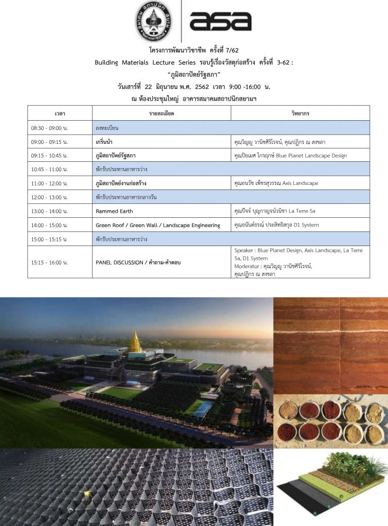 22 มิ.ย. 62 | โครงการพัฒนาวิชาชีพ ครั้งที่ 7/62 “ภูมิสถาปัตย์รัฐสภา”