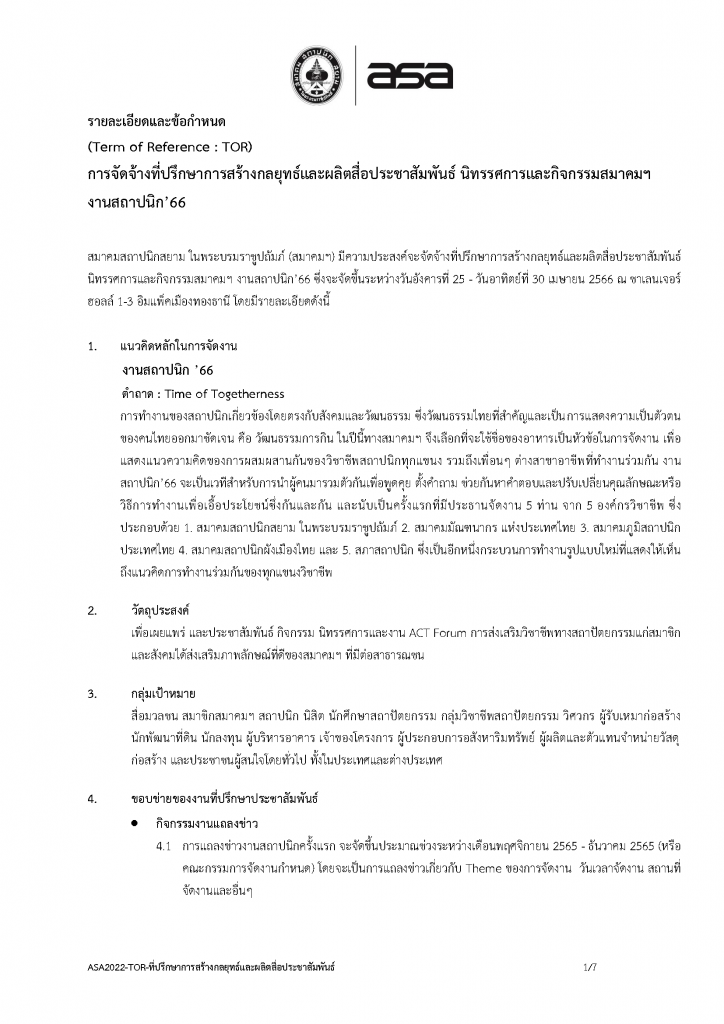 Home » Architects Expo » ประกาศจัดจ้างที่ปรึกษาการสร้างกลยุทธ์และผลิตสื่อประชาสัมพันธ์ นิทรรศการและกิจกรรมสมาคมฯ งานสถาปนิก’66