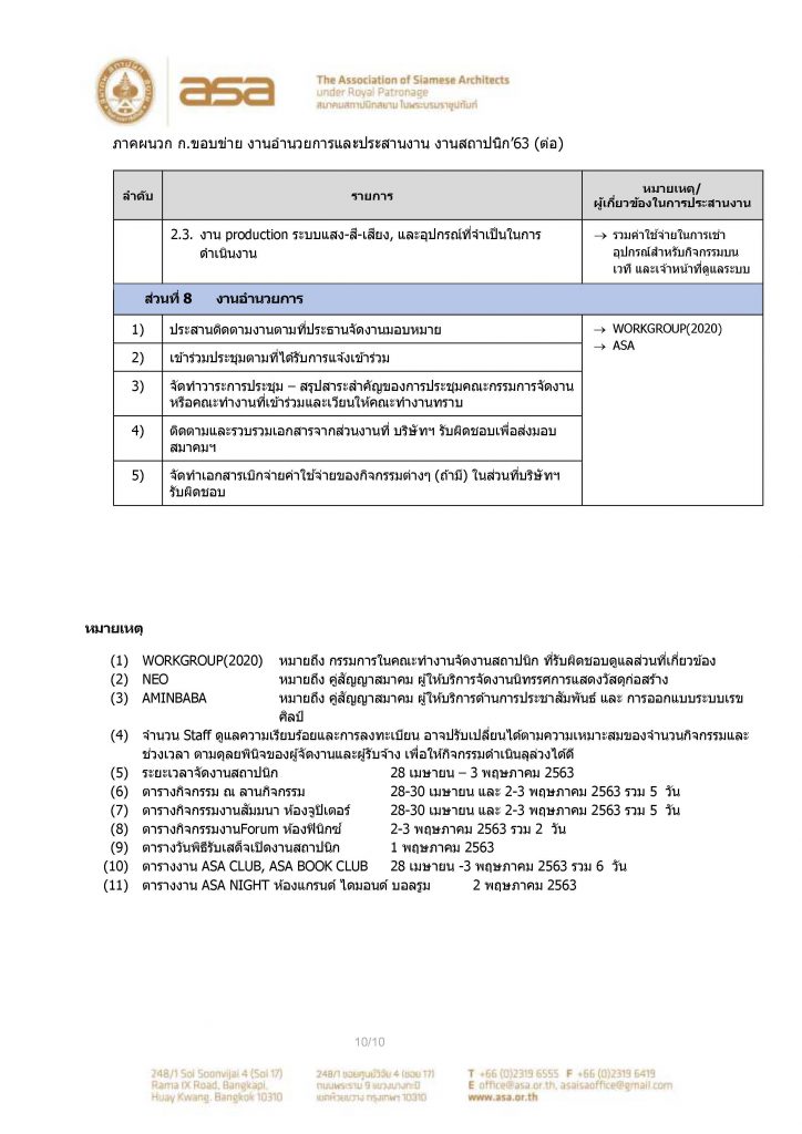 TOR โครงการงานอำนวยการและประสานงานการจัดนิทรรศการ งานสถาปนิก’63