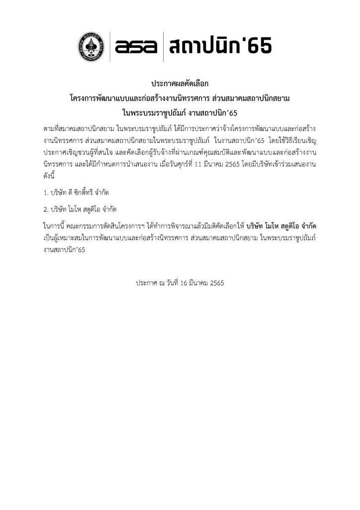 Home » Architects Expo » ประกาศผลคัดเลือก โครงการพัฒนาแบบและก่อสร้างงานนิทรรศการ ส่วนสมาคมสถาปนิกสยาม ในพระบรมราชูปถัมภ์ งานสถาปนิก’65