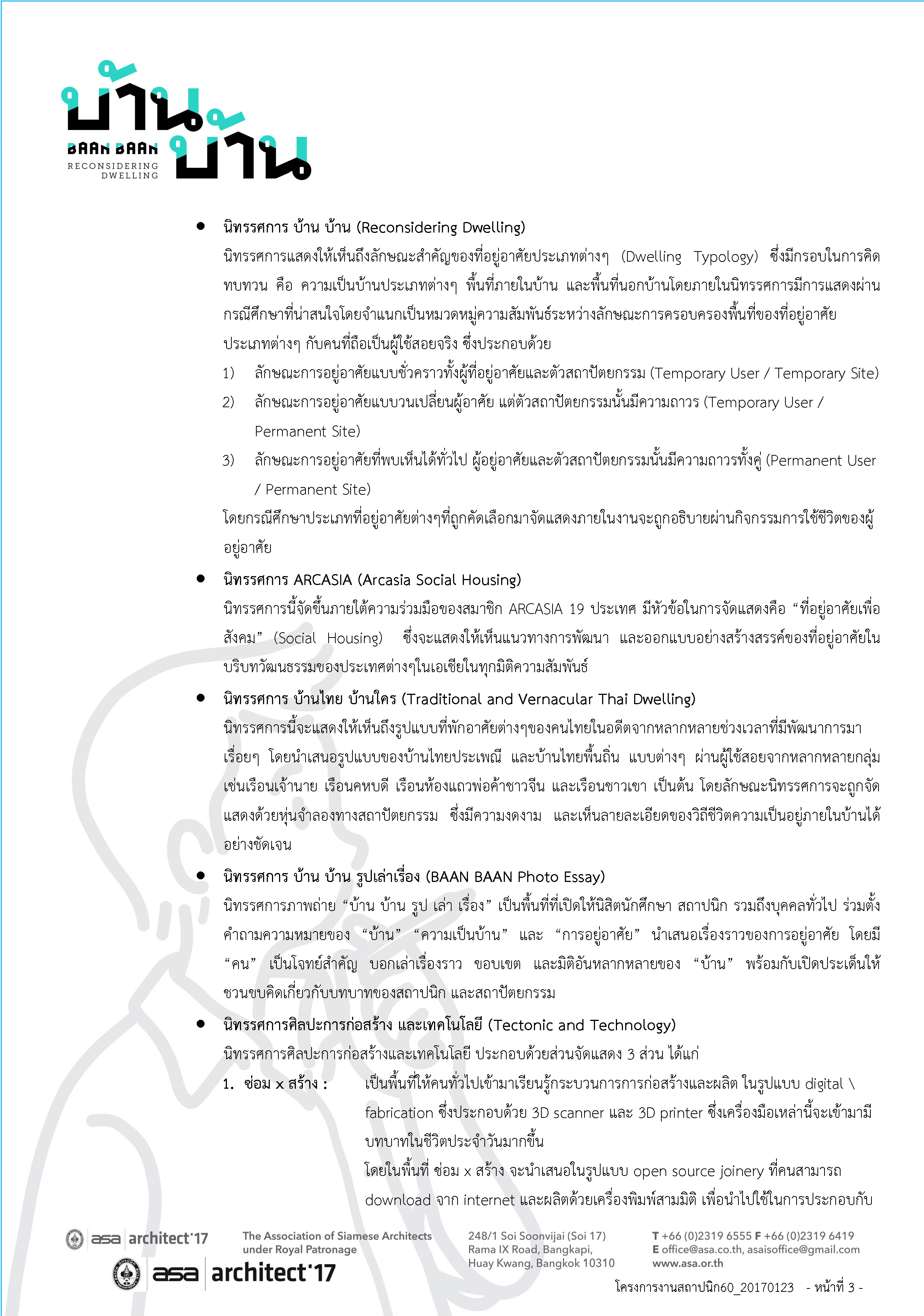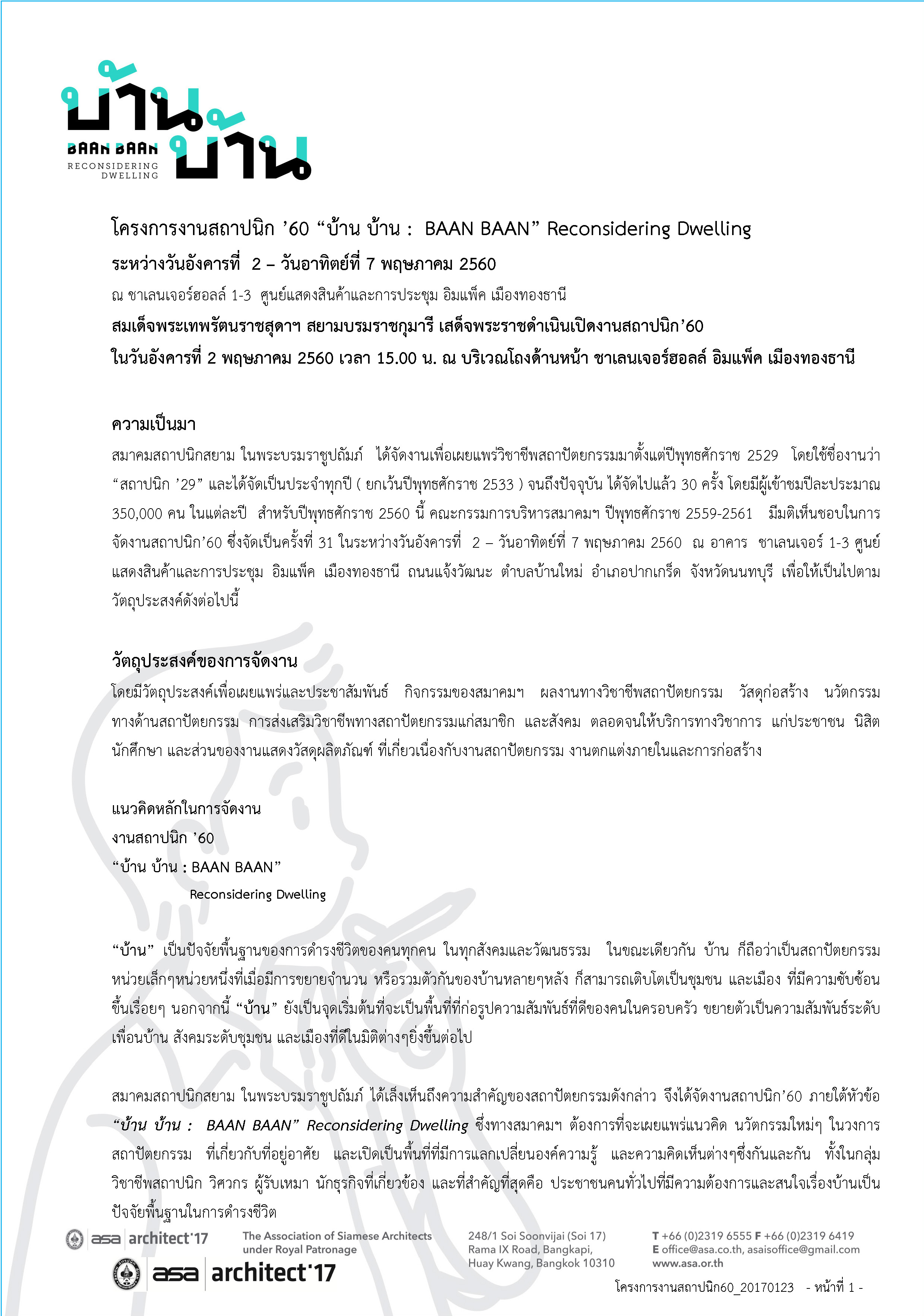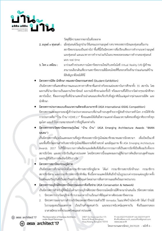 ติดตามรายละเอียดงานสถาปนิก’60 ทั้งหมดได้ที่ www.asaexpo.org และ https://www.facebook.com/ASAArchitectExposition/