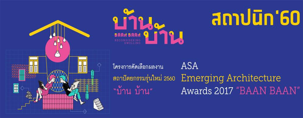 โครงการคัดเลือกผลงานสถาปัตยกรรมรุ่นใหม่ 2560 “บ้าน บ้าน” : ASA EMERGING ARCHTIECTURES AWARDS 2017 “BAAN BAAN”