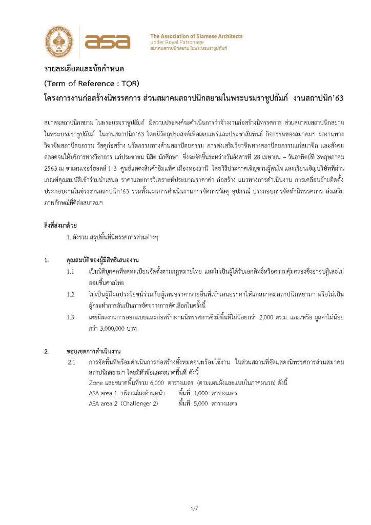 TOR-โครงการงานก่อสร้างนิทรรศการ ส่วนสมาคมฯ งานสถาปนิก’63 final