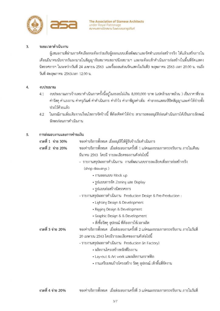 Home » Architects Expo » ประกาศการจ้างงานก่อสร้างนิทรรศการ ส่วนสมาคมสถาปนิกสยาม ในพระบรมราชูปถัมภ์ ในงานสถาปนิก’63