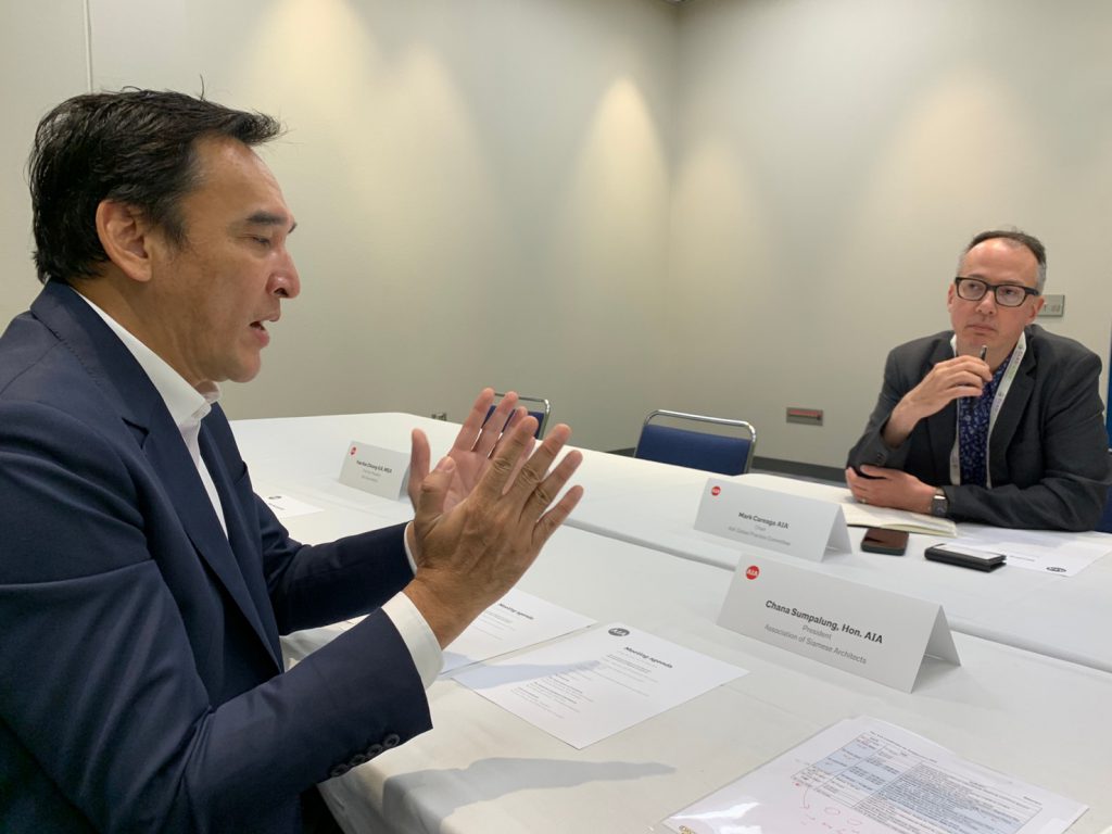 งาน AIA Conference on Architecture 2022 จัดขึ้นระหว่างวันที่ 22 มิถุนายน – 26 มิถุนายน 2565 ณ McCormick Place Convention Center ณ เมืองชิคาโก ประเทศสหรัฐอเมริกา โดยมี นายชนะ สัมพลัง นายกสมาคมฯ และ ผศ.ดร. รัฐพงษ์ อังกสิทธิ์ อุปนายก เป็นผู้แทนสมาคม โดยภายในงานดังกล่าว ได้มีการจัดเสวนา International Presidents’ forum ในวันที่ 24 มิถุนายน 2565 เพื่อแลกเปลี่ยนแนวคิด ปัญหาที่เกิดจากสภาวะโลกร้อนและการเปลี่ยนแปลงสภาพภูมิอากาศ รวมทั้งมาตราการและแผนการดำเนินการเพื่อแก้ปัญหาดังกล่าว