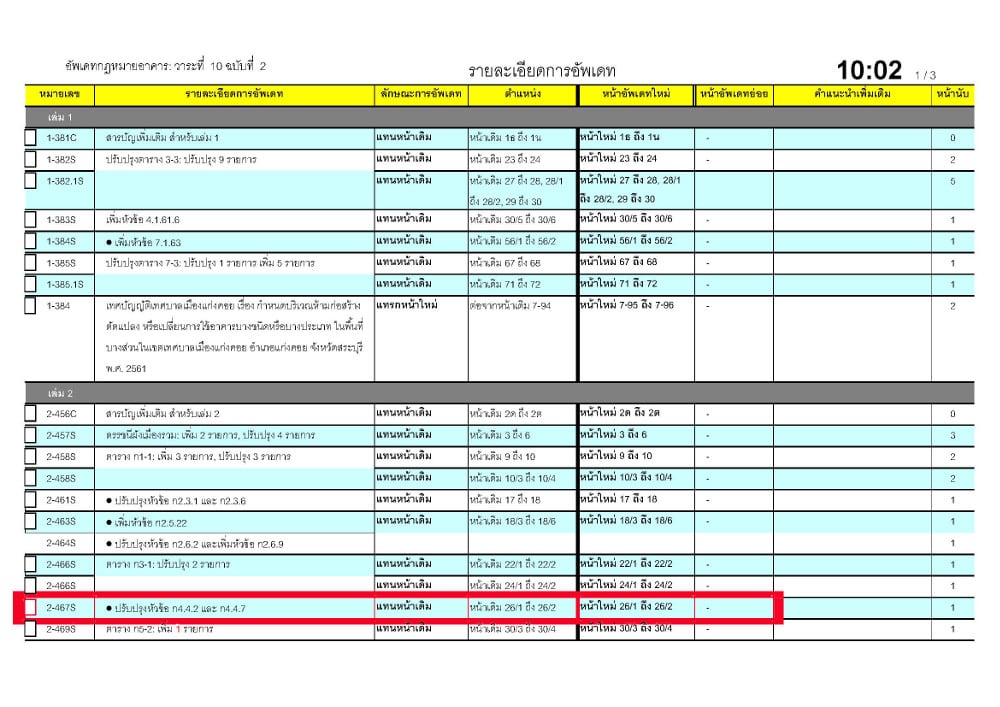 แจ้งข้อผิดพลาดของเอกสารอัพเดทกฎหมาย ฉบับ 10:02