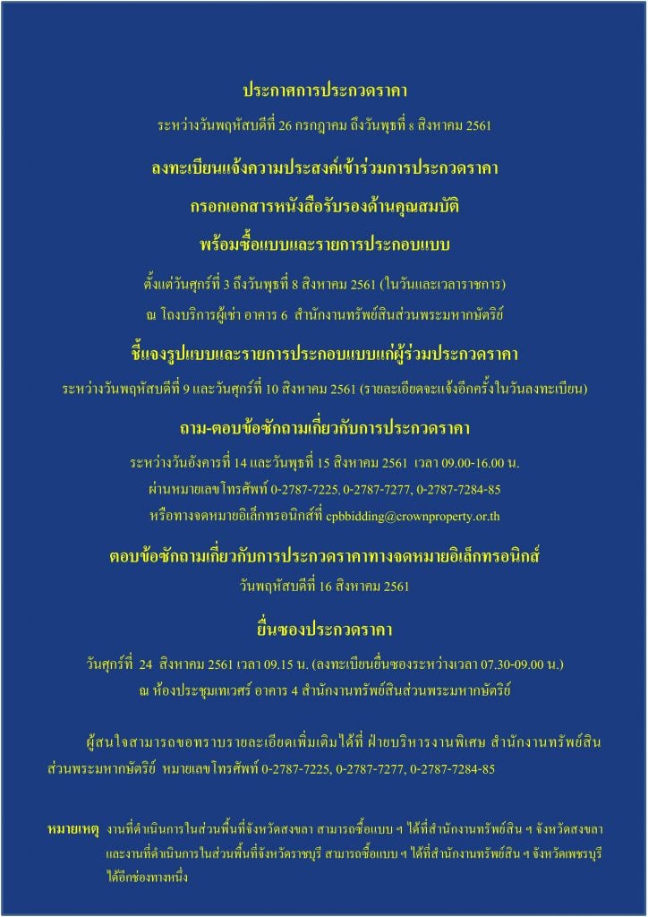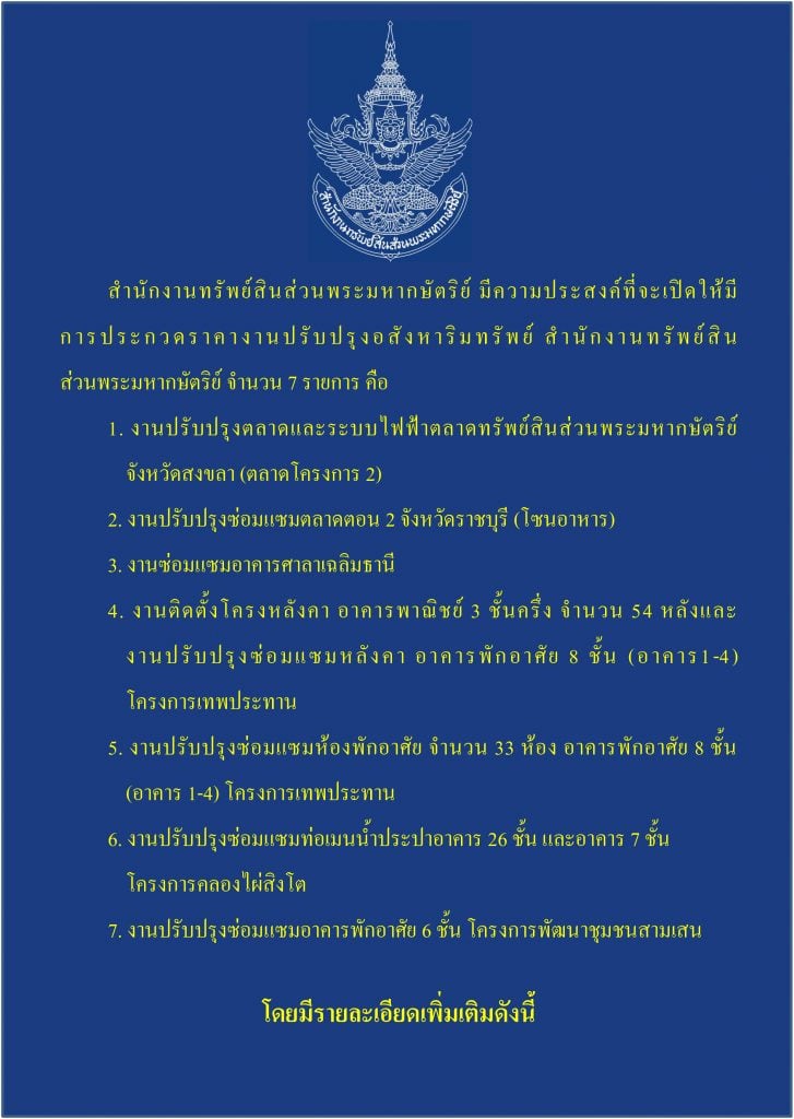 การประกวดราคางานปรับปรุงอสังหาริมทรัพย์ สำนักงานทรัพย์สินส่วนมหากษัตริย์