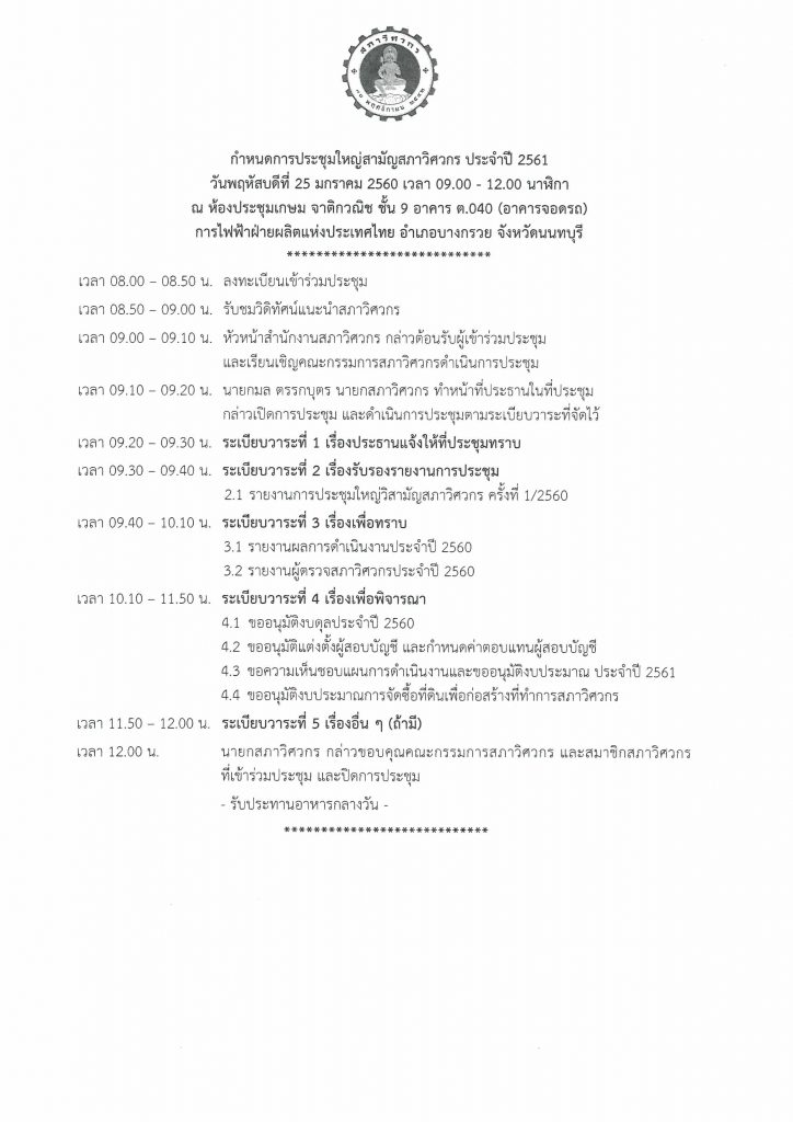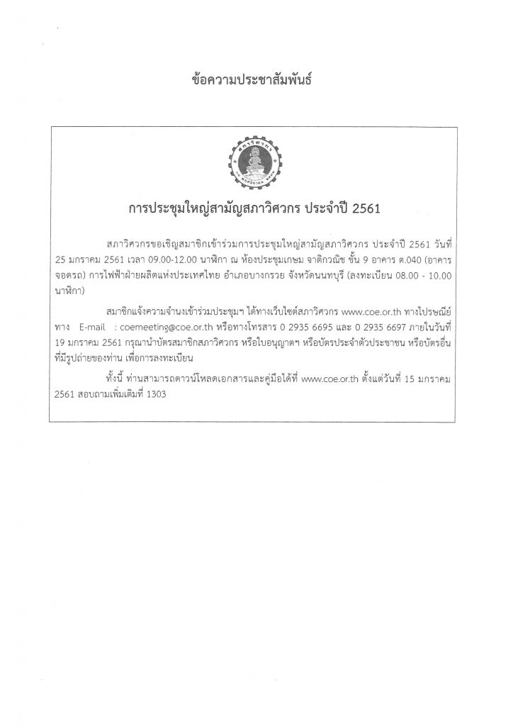 การประชุมใหญ่สามัญสภาวิศวกร ประจำปี 2561
