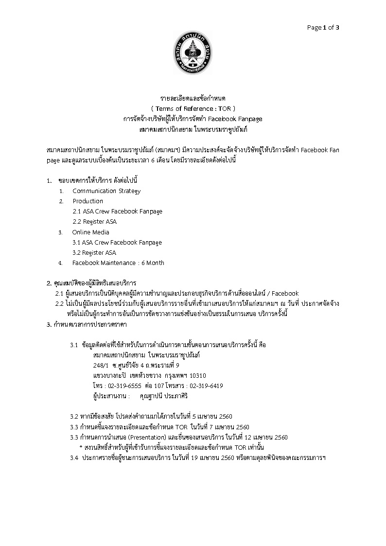 ประกาศจัดจ้างบริษัทผู้ให้บริการจัดทำ Facebook Fanpage