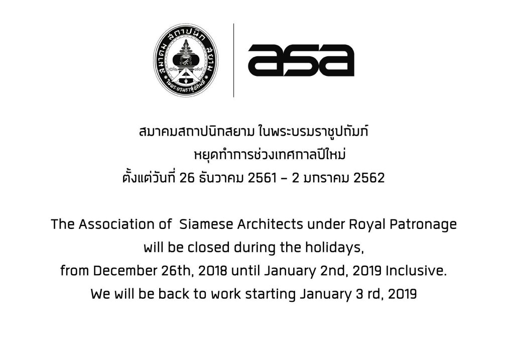 ประกาศวันหยุดสมาคมสถาปนิกสยามฯ ช่วงเทศกาลปีใหม่