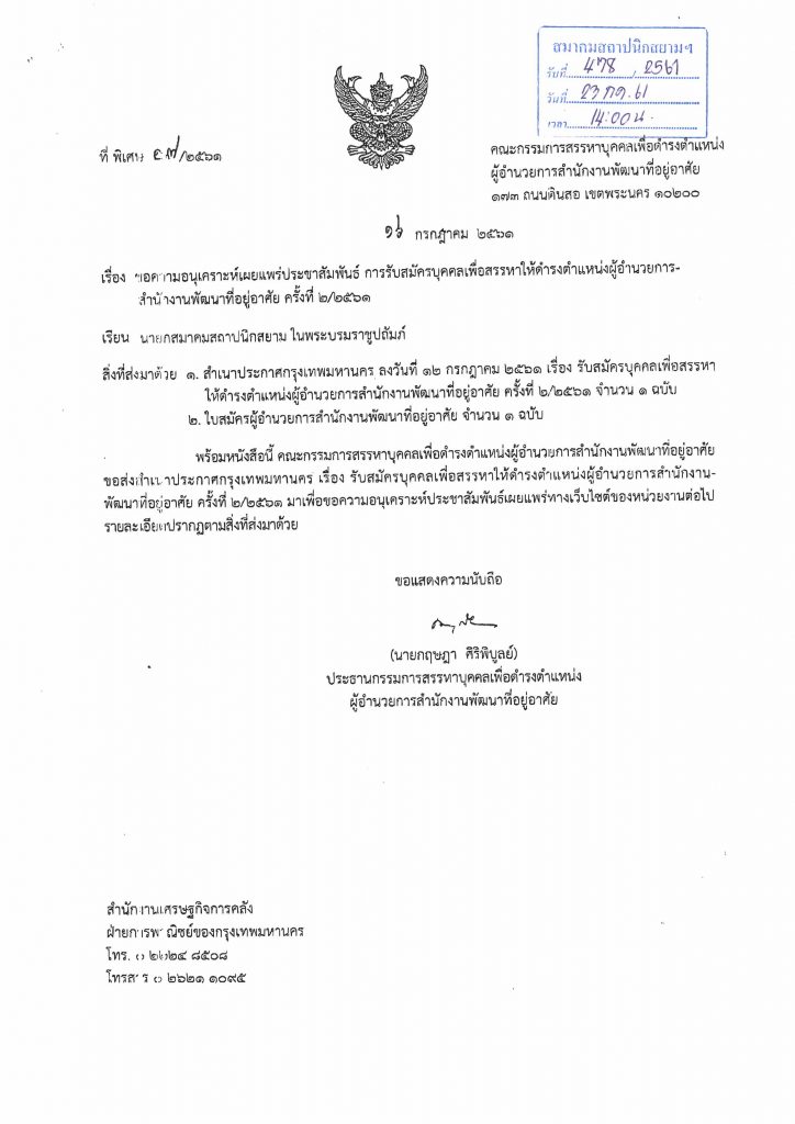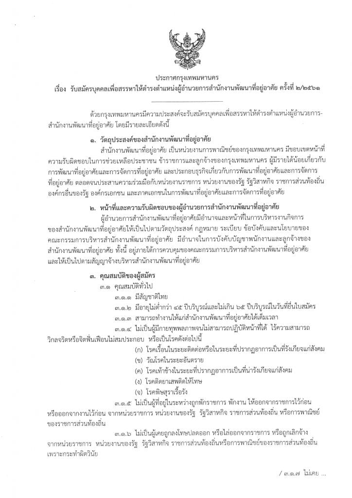 ประกาศสรรหาผู้อำนวยการ สำนักงานพัฒนาที่อยู่อาศัย