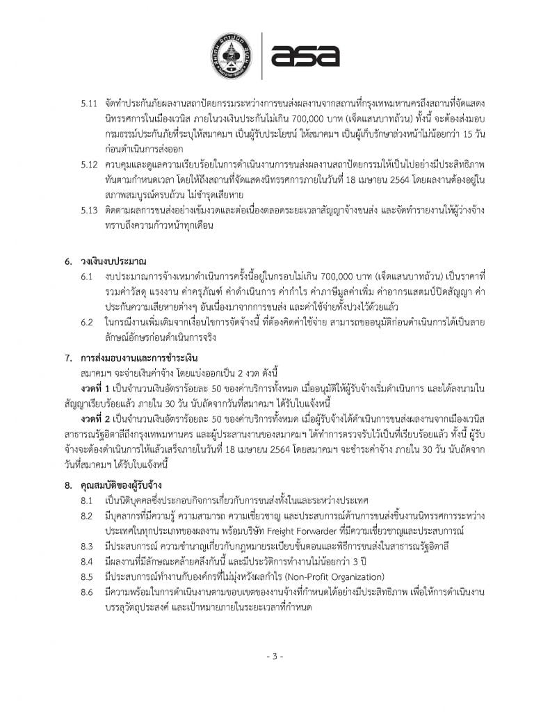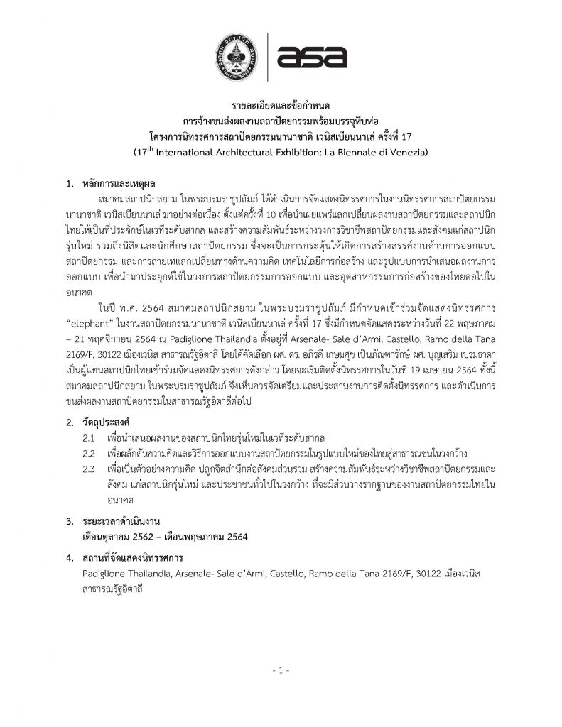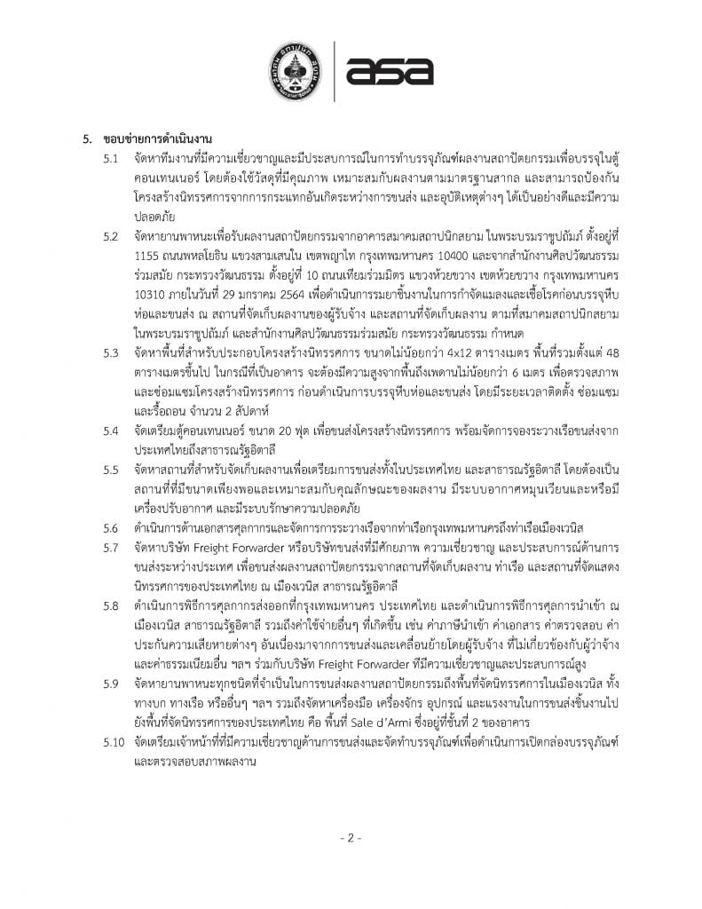 การจ้างขนส่งผลงานสถาปัตยกรรมพร้อมบรรจุหีบห่อ โครงการนิทรรศการสถาปัตยกรรมนานาชาติ เวนิสเบียนนาเล่ ครั้งที่ 17