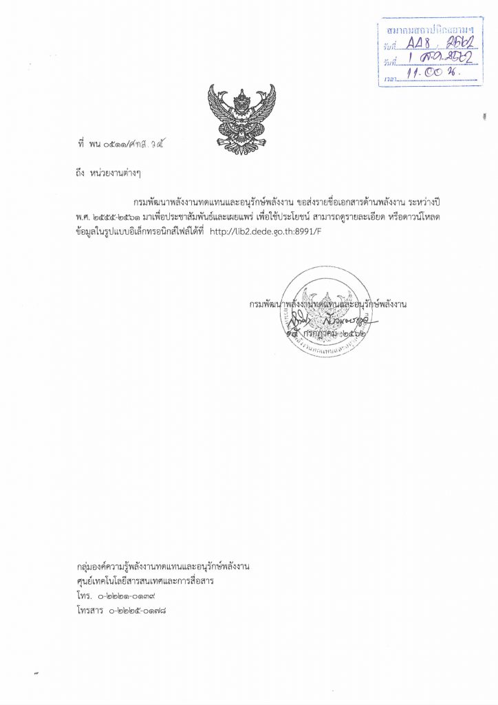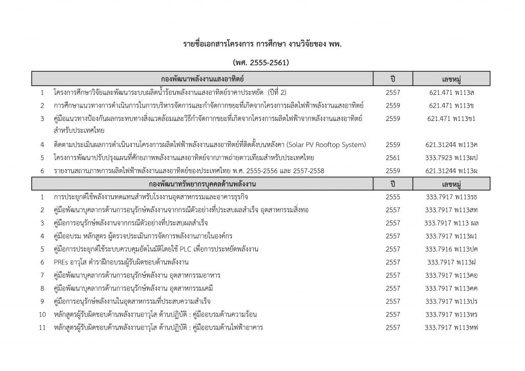 ประชาสัมพันธ์ เอกสารด้านพลังงาน ระหว่างปี 2555-2561