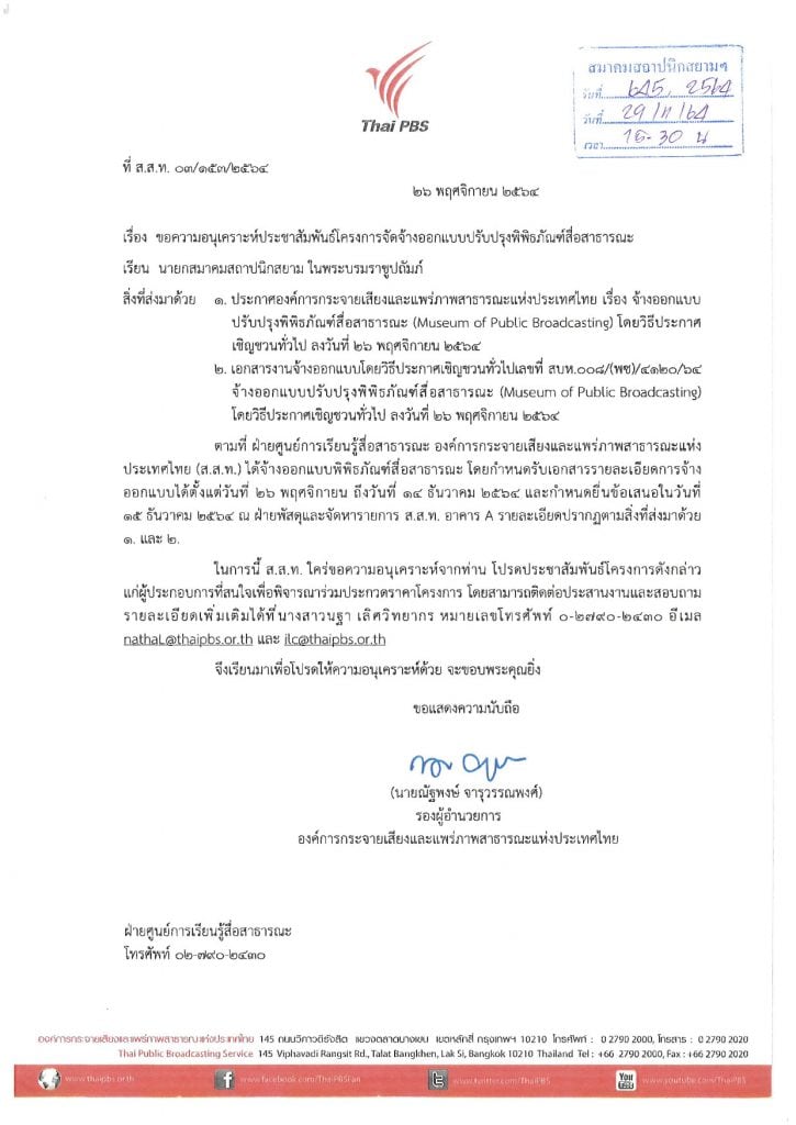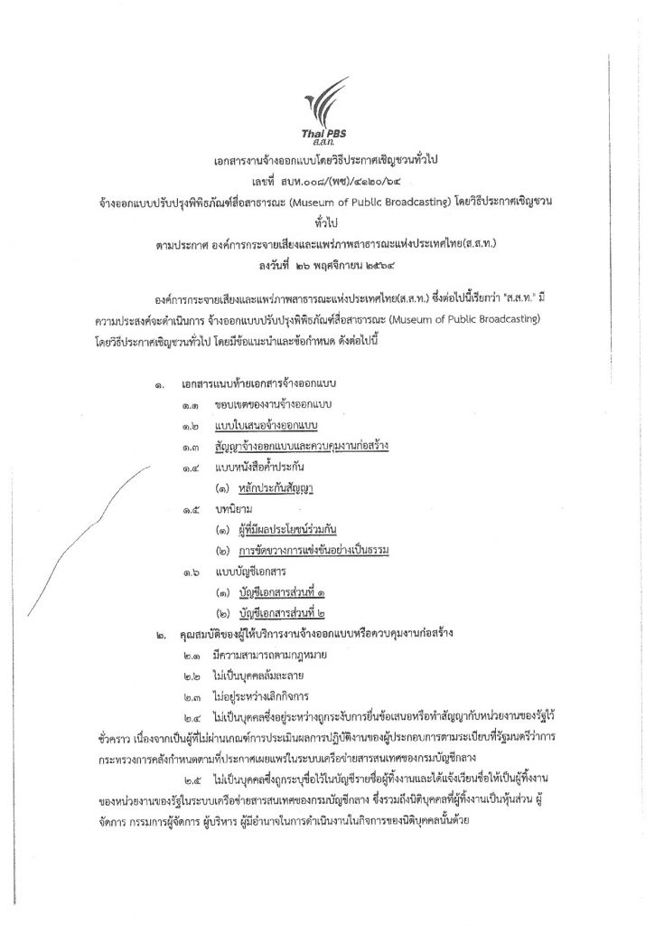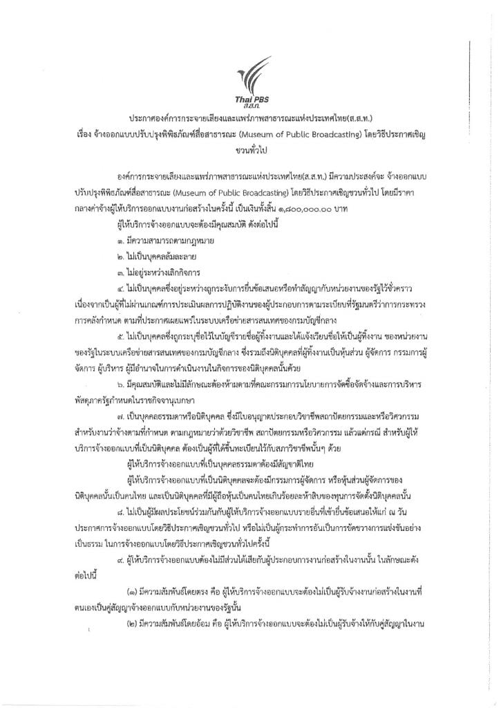 Home » News » โครงการจัดจ้างออกแบบปรับปรุงพิพิธภัณฑ์สื่อสาธารณะ Thai PBS
