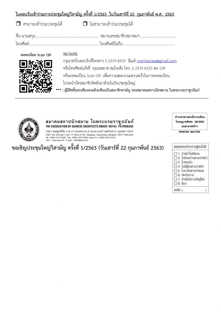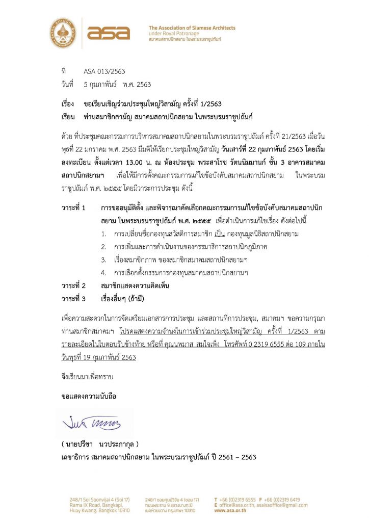 ขอเชิญร่วมประชุมใหญ่วิสามัญ ครั้งที่ 1/2563