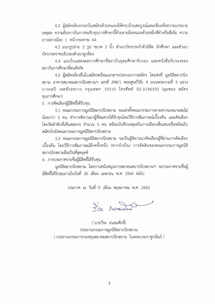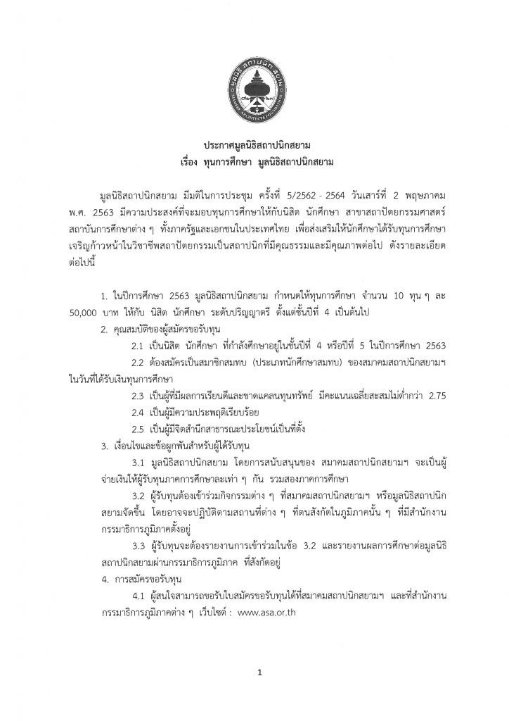 ประกาศทุนการศึกษา มูลนิธิสถาปนิกสยาม