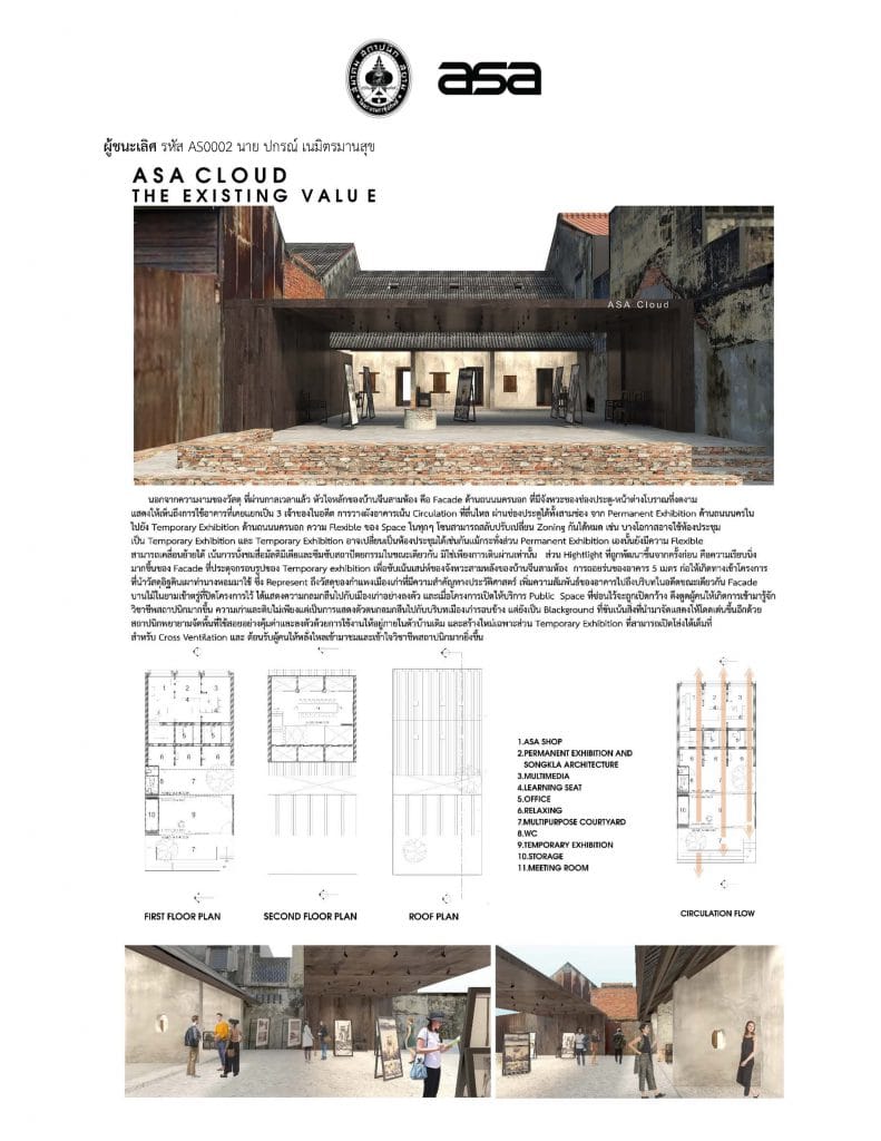 ประกาศผลการตัดสินประกวดแนวความคิดการออกแบบปรับปรุงศูนย์อาษาคลาวด์ ณ จ.สงขลา รอบที่ 2