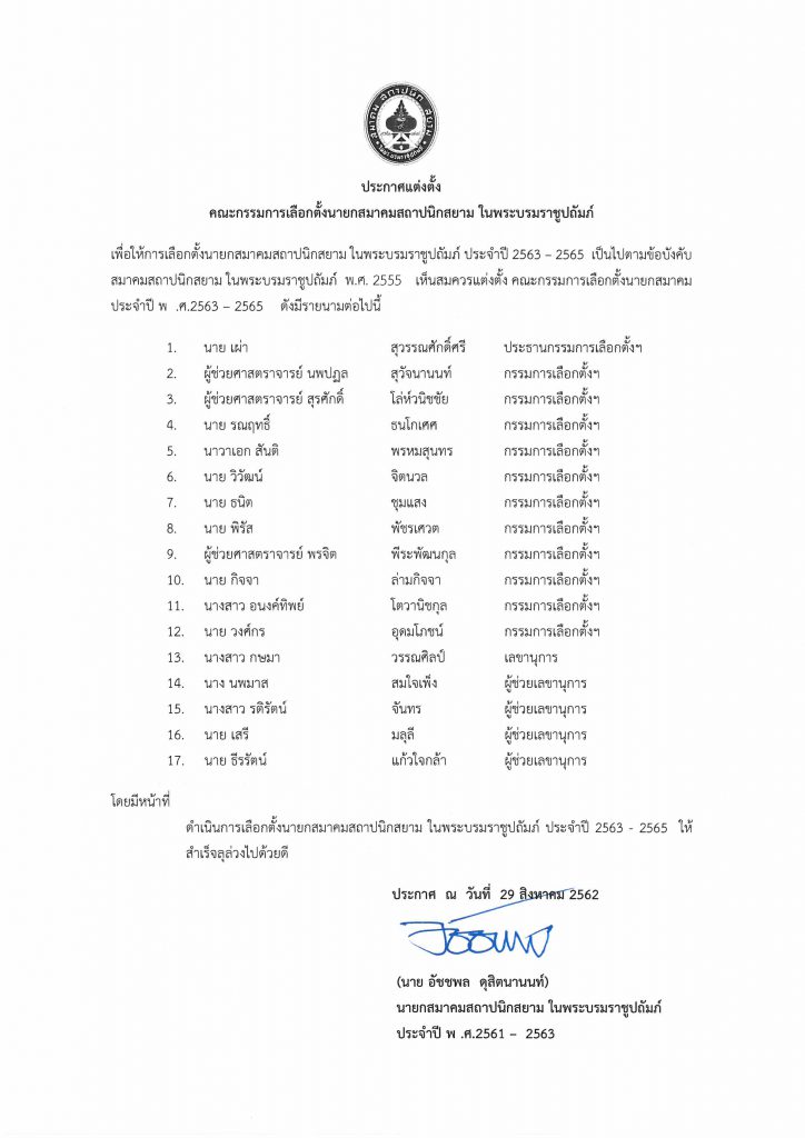 ประกาศแต่งตั้งคณะกรรมการเลือกตั้งนายกสมาคมสถาปนิกสยามฯ ประจำปี 2563-2565