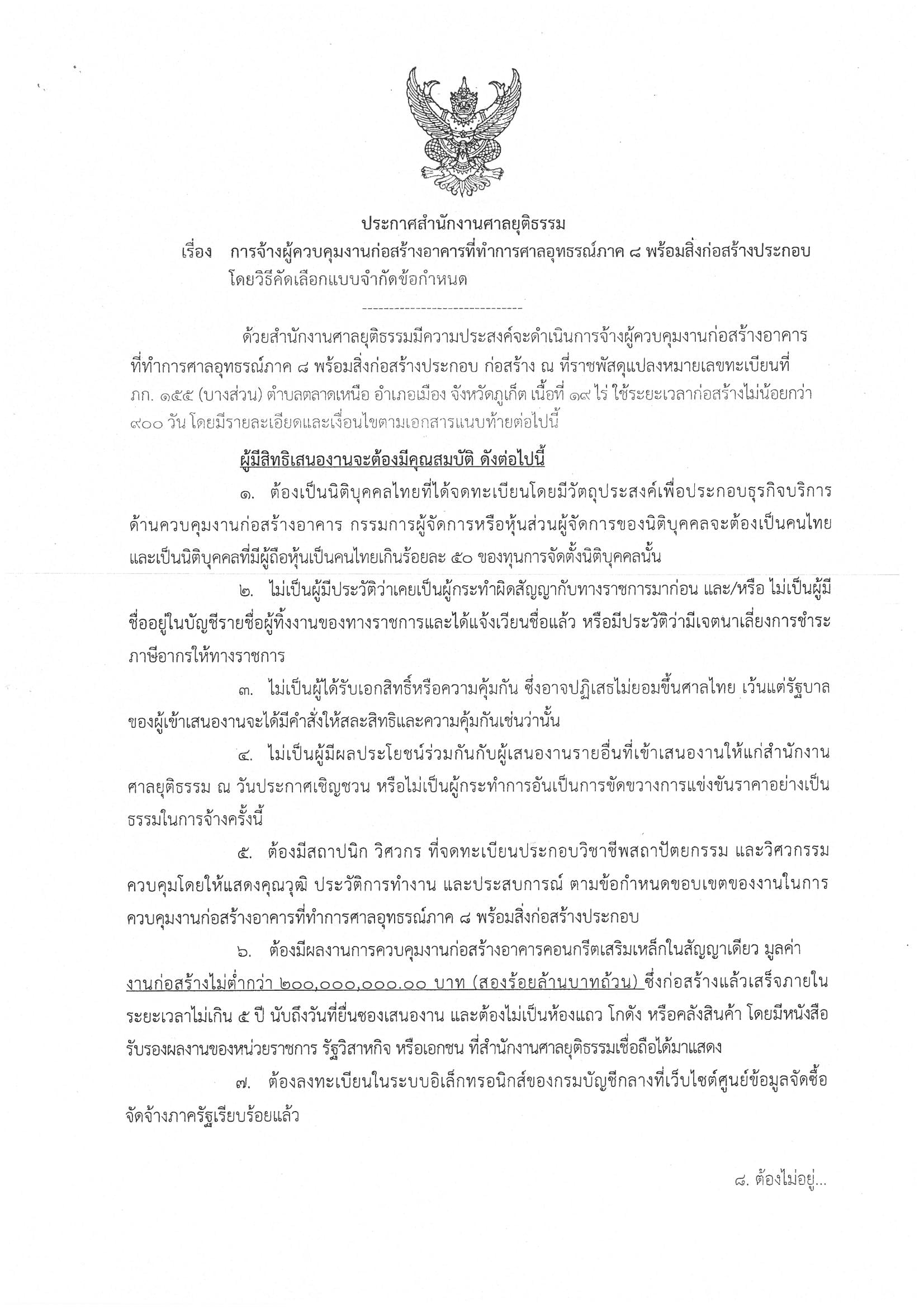 Home » News » ประกาศสำนักงานศาลยุติธรรม เรื่อง การจ้างผู้ควบคุมงานก่อสร้างอาคารที่ทำการศาลอุทธรณ์ภาค 8