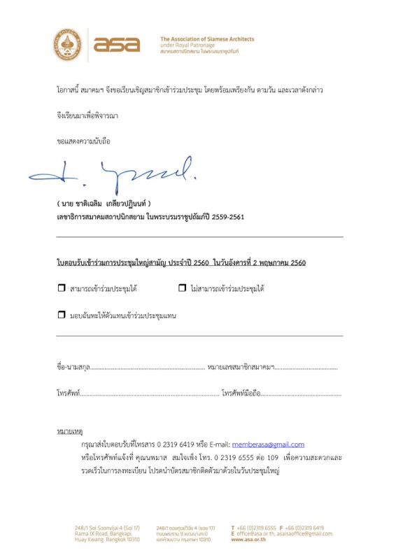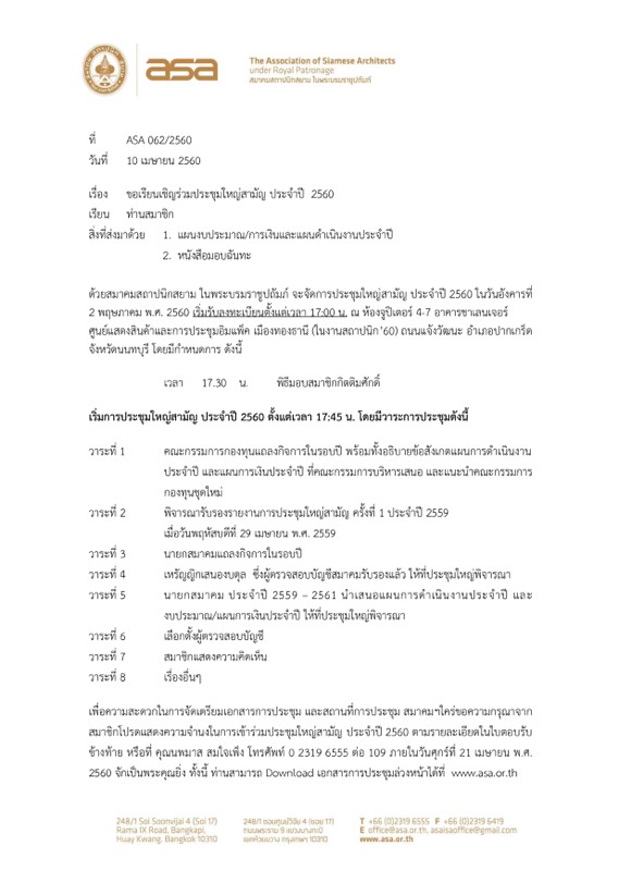 จดหมายเชิญประชุมใหญ่ 2560