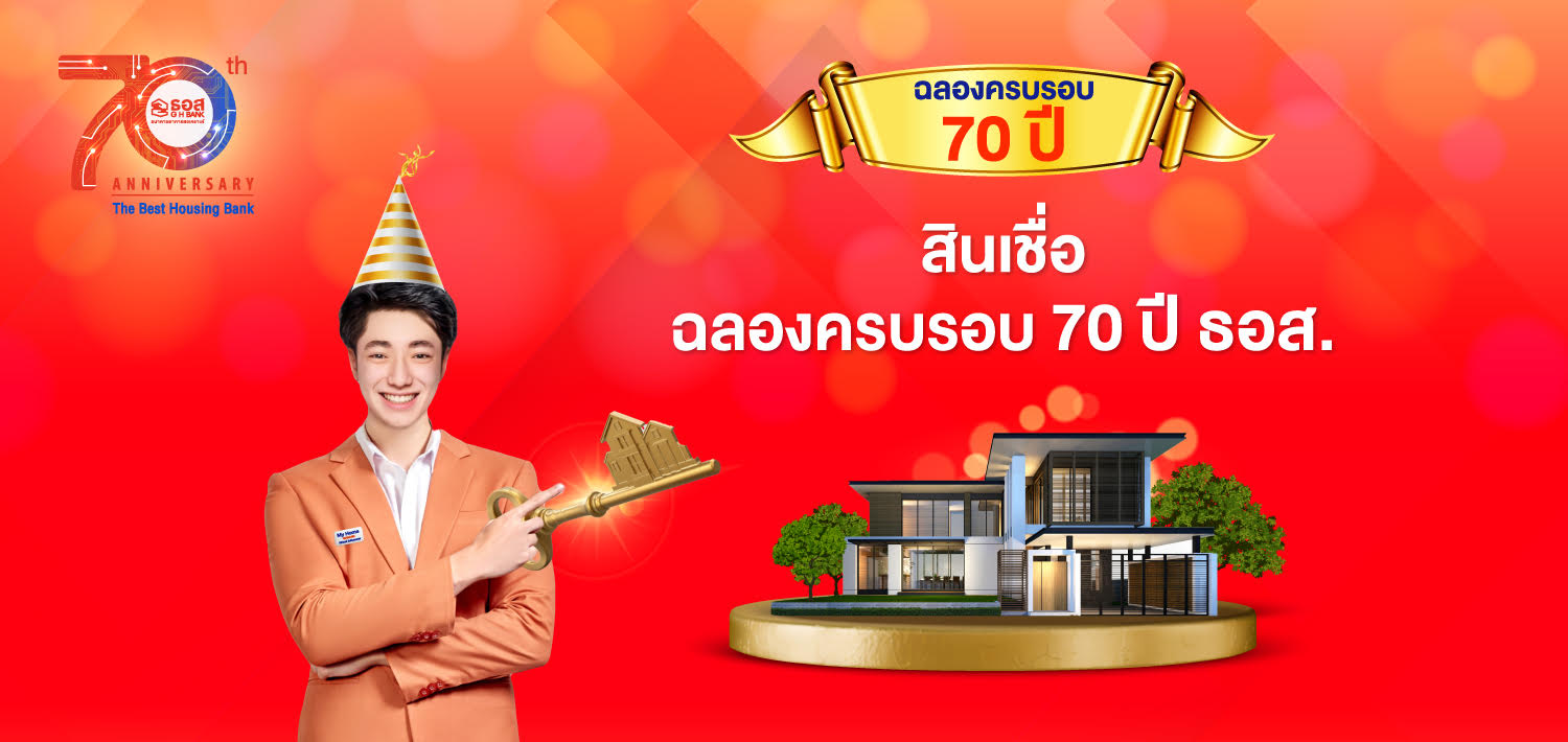 ธนาคารอาคารสงเคราะห์ (ธอส.) ฉลองครบรอบ 70 ปี จัดโปรโมชัน “สินเชื่อบ้าน 70 ปี ธอส” ภายใต้กรอบวงเงิน 10,000 ล้านบาท
