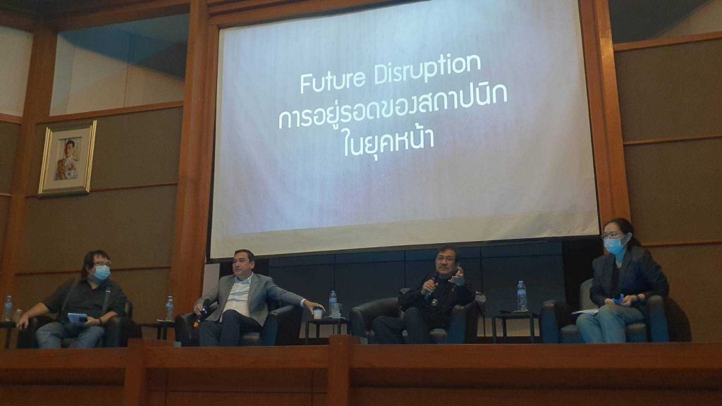 ได้รับเกียรติจาก คุณประภากร วทานยกุล นายกสภาสถาปนิก คุณชนะ สัมพลัง นายกสมาคมสถาปนิกสยามฯ ร่วมเป็นวิทยากรบรรยายในช่วงเช้าหัวข้อ “การปฏิบัติวิชาชีพของสถาปนิกในยุค The Age of Disruption” และท่าน อ.จุลทัศน์ กิติบุตร ศิลปินแห่งชาติ สาขาทัศนศิลป์ (สถาปัตยกรรมร่วมสมัย) รศ.ดร.พงศ์ศักดิ์ วัฒนสินธุ์ กรรมการสภาวิชาการผู้ทรงคุณวุฒิ มทร.ล้านนา ร่วมเป็นวิทยากรบรรยายในช่วงบ่าย หัวข้อ “Innovation Mindset : บทบาทของสถาปนิกกับการออกแบบสถาปัตยกรรม”