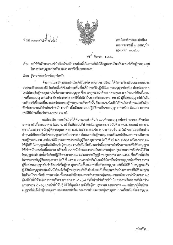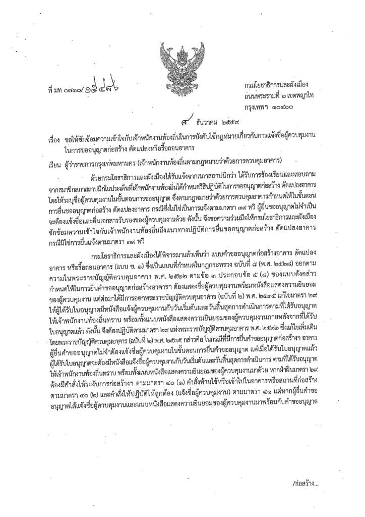 ประชาสัมพันธ์การปฏิบัติตามกฎหมายควบคุมอาคารเกี่ยวกับการขออนุญาตก่อสร้างดัดแปลงอาคาร
