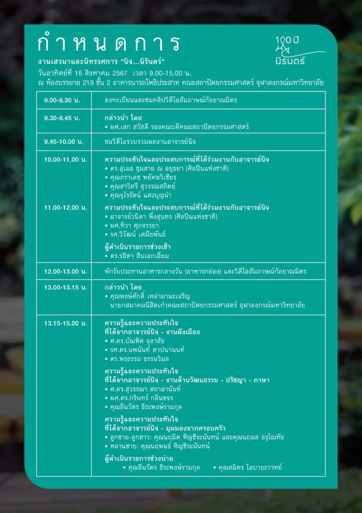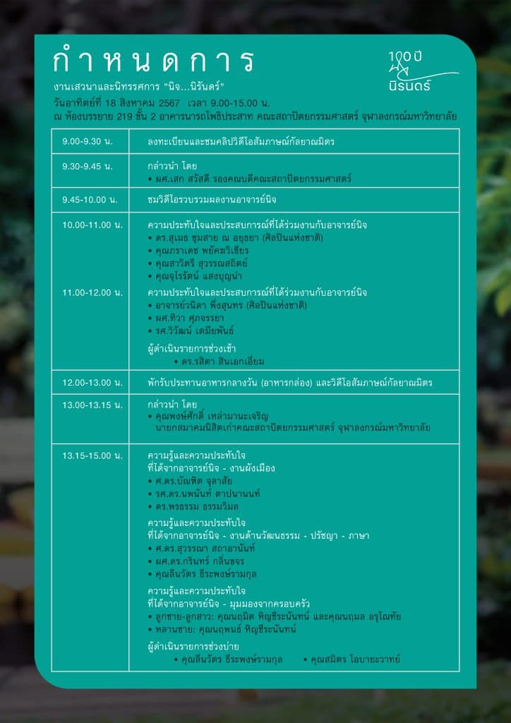 100 ปี นิจ นิรันดร์ : งานเสวนาและนิทรรศการ อ.นิจ หิญชีระนันทร์