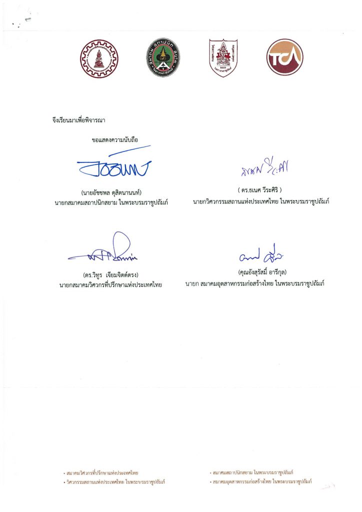 ในโอกาสเดียวกันสมาคมฯได้ทำหนังสือเชิญชวน 4 สมาคมวิชาชีพฯ ได้แก่ สมาคมอุตสาหกรรมก่อสร้างไทย ในพระบรมราชูปถัมภ์ สมาคมวิศวกรรมสถานแห่งประเทศไทย ในพระบรมราชูปถัมภ์และสมาคมวิศวกรที่ปรึกษาแห่งประเทศไทย เข้าร่วมรับฟังและแลกเปลี่ยนความคิดเห็นในการนี้ด้วย