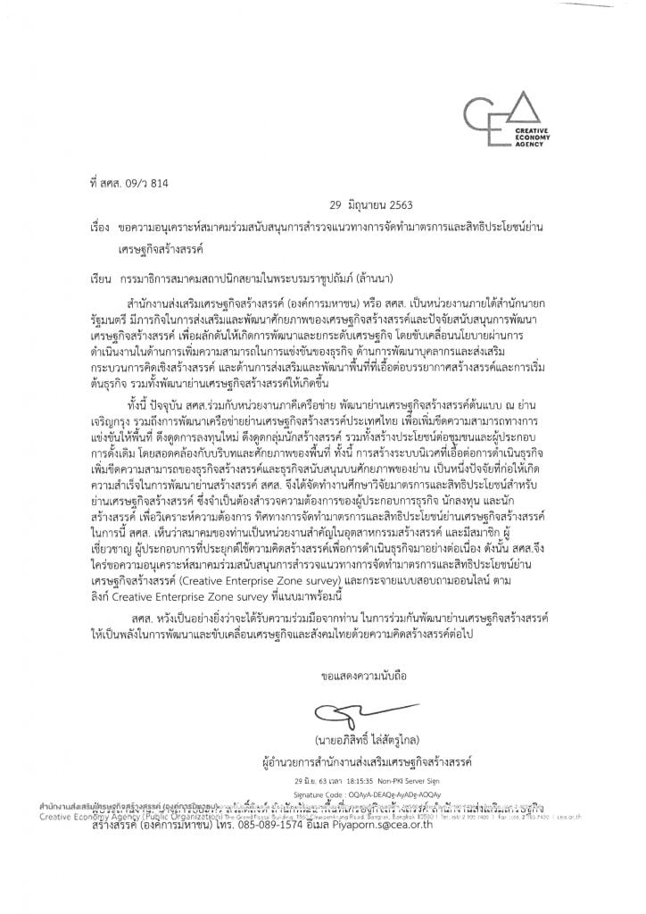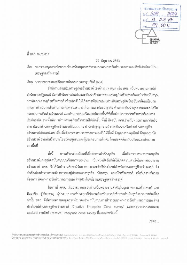 Home » News » แบบสำรวจการจัดทำแนวทางการจัดทำมาตรฐานและสิทธิประโยชน์ย่านเศรษฐกิจสร้างสรรค์