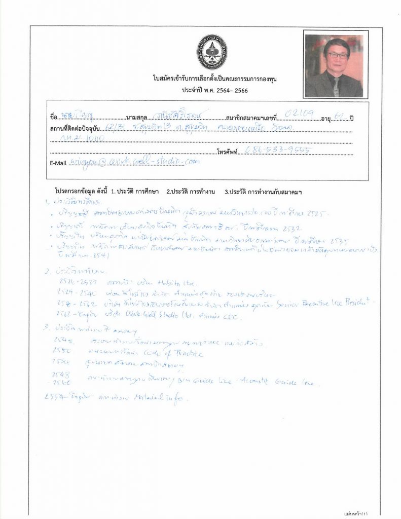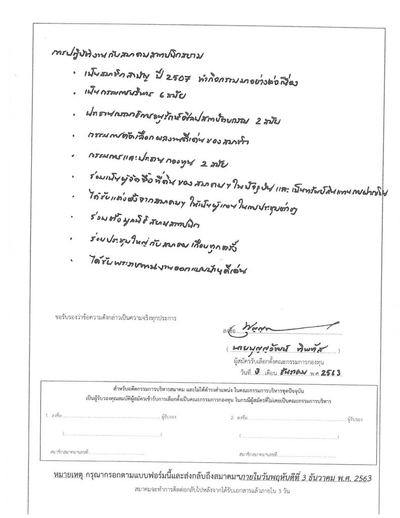 จดหมายเชิญลงคะแนนเลือกตั้งคณะกรรมการกองทุน