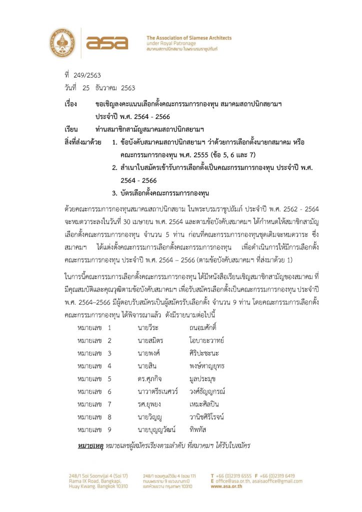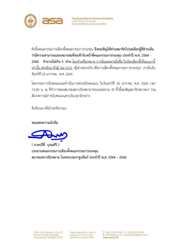Home » News » ขอเชิญลงคะแนนเลือกตั้งคณะกรรมการกองทุน สมาคมสถาปนิกสยามฯ ประจำปี พ.ศ. 2564 – 2566