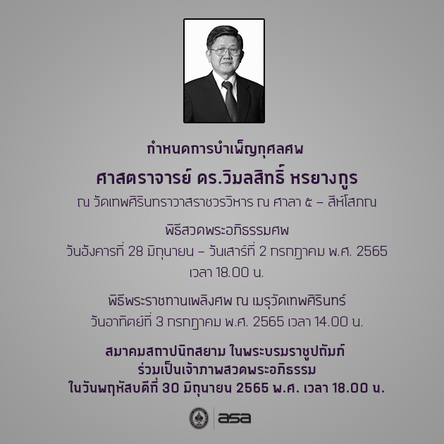 ขอแสดงความเสียใจต่อการจากไปของ ศ.ดร.วิมลสิทธิ์ หรยางกูร