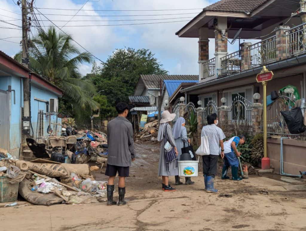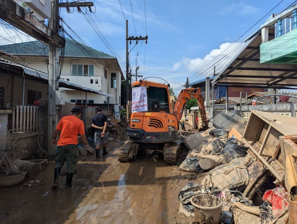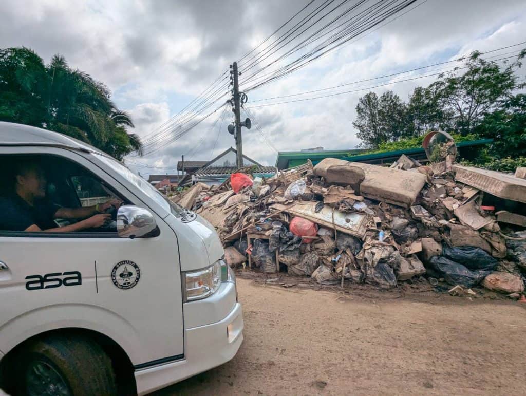 เมื่อวันที่ 18 – 21 กันยายน 2567 สมาคมสถาปนิกสยาม ในพระบรมราชูปถัมภ์ นำโดย คุณชุตยาเวศ สินธุพันธ์ุ อุปนายกฝ่ายกิจกาจพิเศษ และ ผศ.ณธทัย จันเสน กรรมการกลางฝ่ายกิจกรรมเมืองและนโยบายสาธารณะ ได้เดินทางไปสำรวจพื้นที่น้ำท่วม อ.แม่สาย จ.เชียงราย เพื่อหาแนวทางการฟื้นฟูอาคารและบ้านเรือนหลังน้ำท่วม ร่วมกับกรรมาธิการสถาปนิกล้านนาและตัวแทนองค์กร รวมถึงอาสาสมัครต่างๆ ในพื้นที่ ในการสำรวจและเก็บข้อมูลครั้งนี้ ทางสมาคมฯก็ได้นำสิ่งของสำหรับการทำความสะอาดอาคารบ้านเรืองที่ได้เปิดรับบริจาคจากสมาชิกและผู้มีจิตศรัทธา ไปมอบให้แก่ผู้ประสบภัย รวมถึงทำการจัดซื้ออุปกรณ์ต่างๆ ที่จำเป็นสำหรับการฟื้นฟู และสิ่งของอุปโภค บริจาค จากเงินบริจาคที่ช่วยเหลือ เพื่อนำไปแจกจ่ายในพื้นที่ประสบภัยเช่นกัน