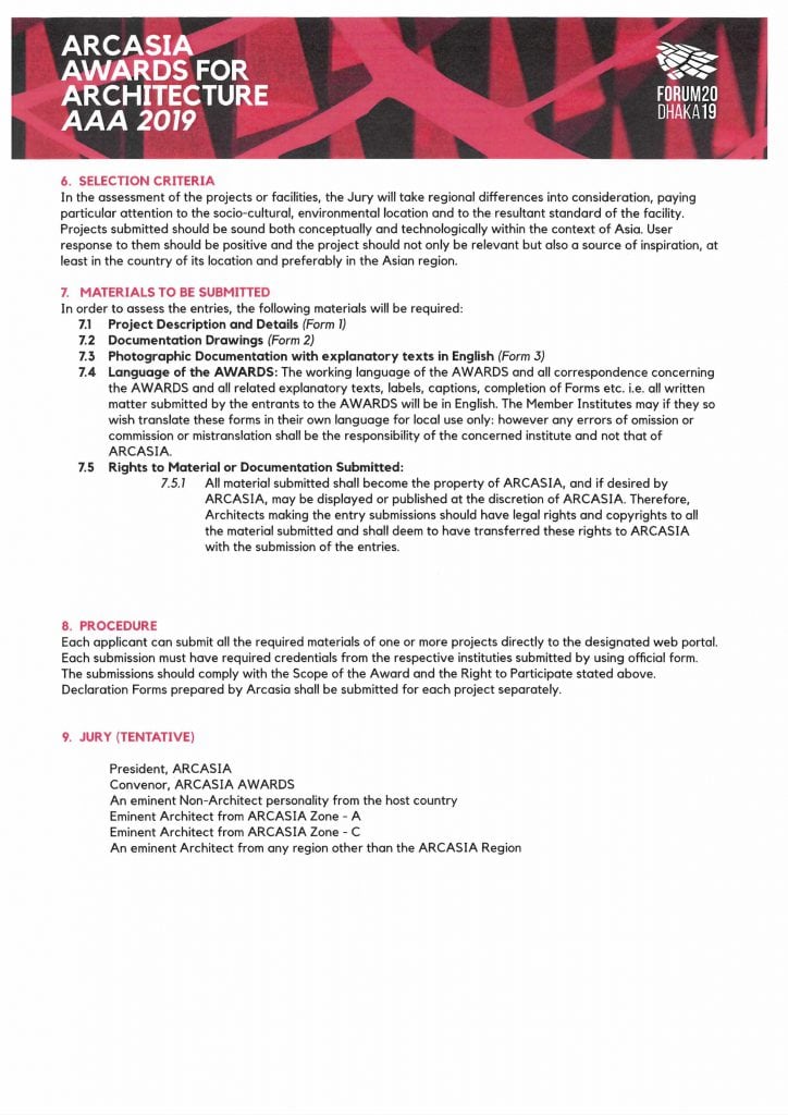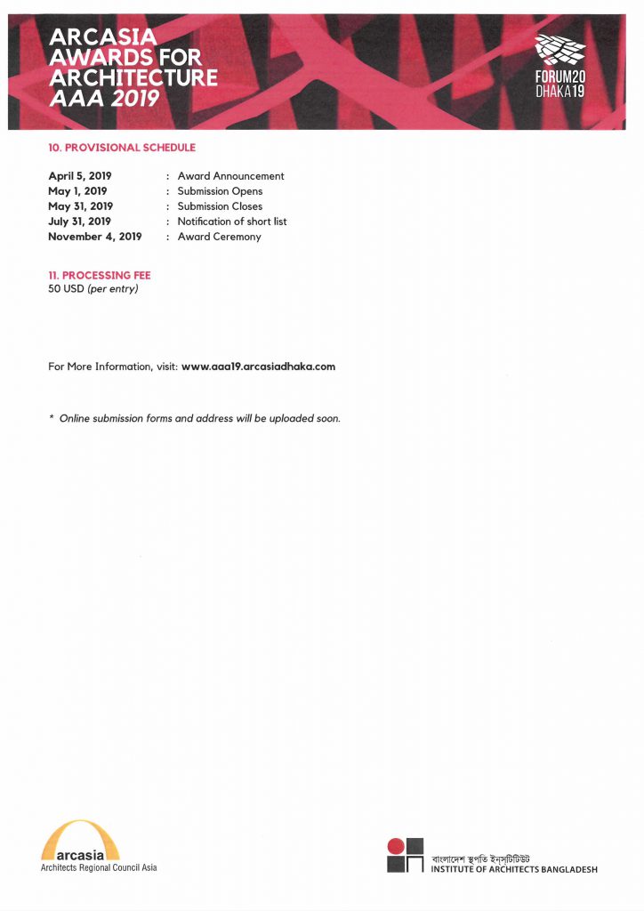 FOR APPLICATION / SUBMISSION / INFORMATION, visit WWW.AAA19.ARCASIADHAKA.COM