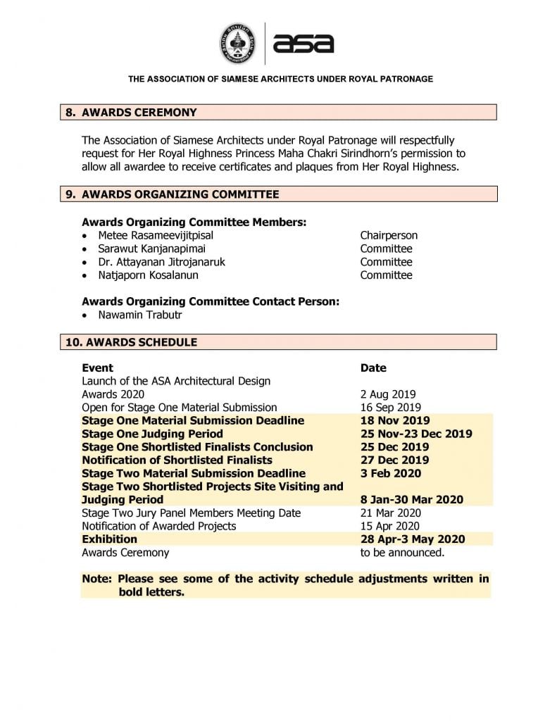 Adjusted schedule-ASA Architectural Design Awards 2020 – 11-10-2019-ดูหัวข้อ 3 และ 10