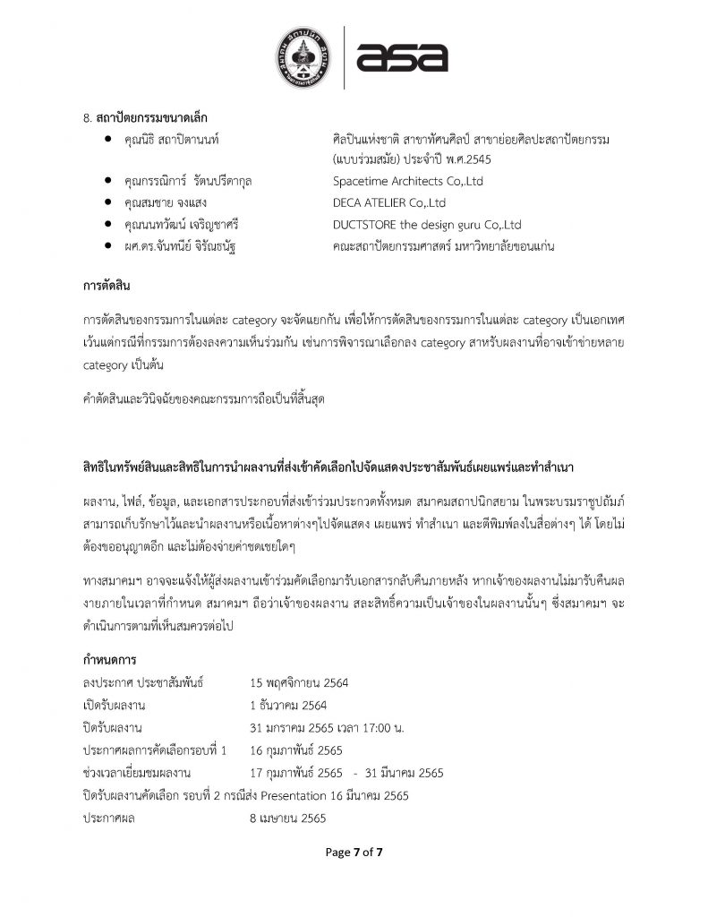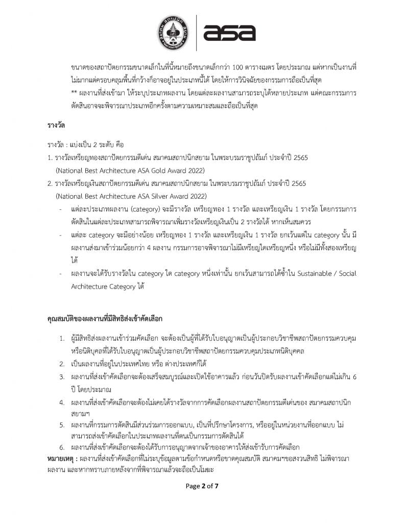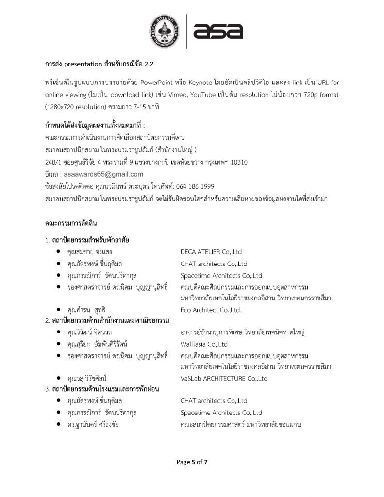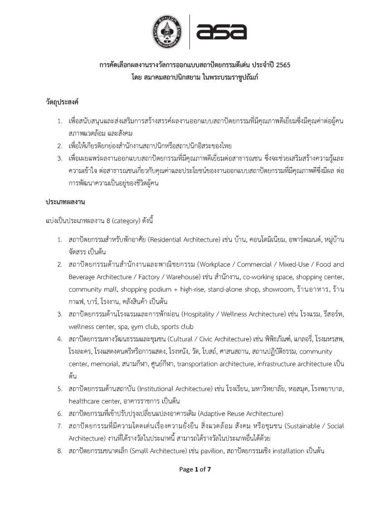 การคัดเลือกผลงานรางวัลการออกแบบสถาปัตยกรรมดีเด่น ประจำปี 2565