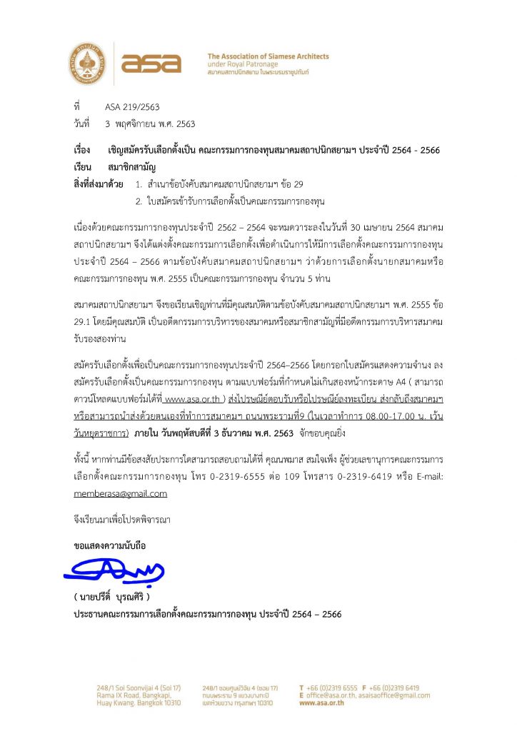 Home » News » เชิญสมัครเลือกตั้งเป็น คณะกรรมการกองทุนสมาคมสถาปนิกสยามฯ ประจำปี 2564-2566
