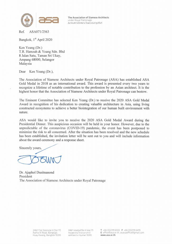 ประกาศรางวัล ASA Gold Medal ประจำปี 2563
