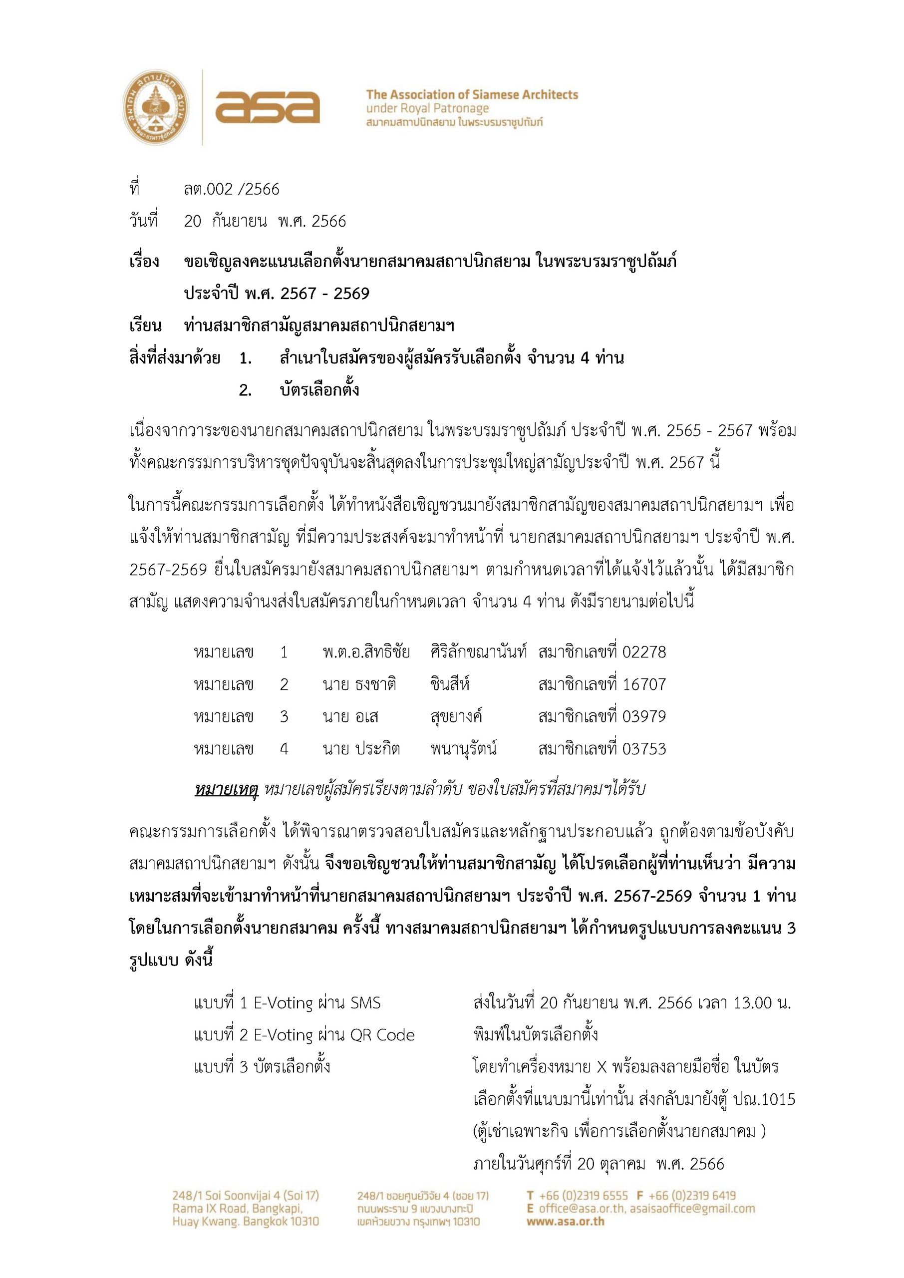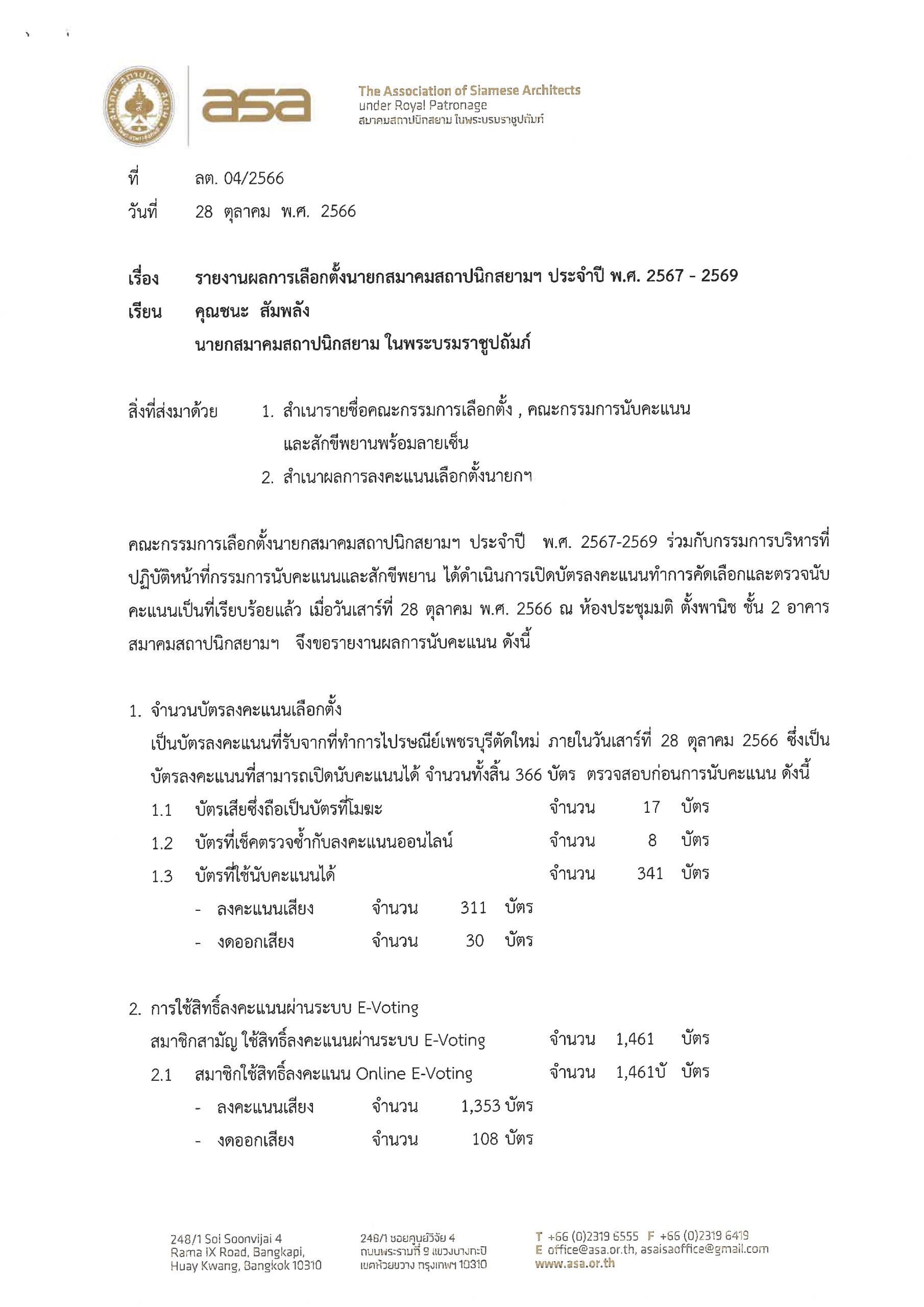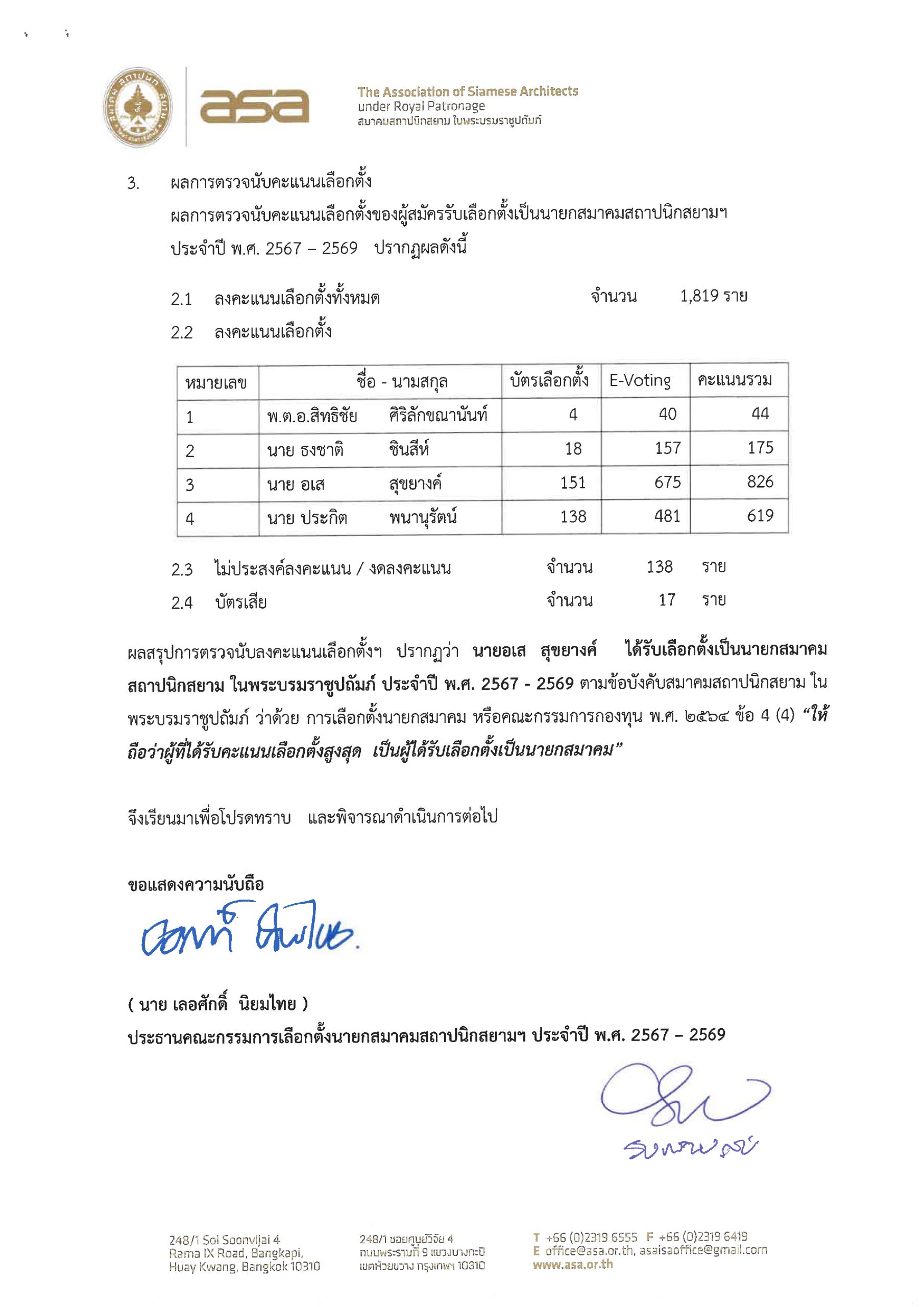 Home » News » ประกาศผลเลือกตั้งนายกสมาคมสถาปนิกสยาม ในพระบรมราชูปถัมภ์ ประจำปี 2567-2569