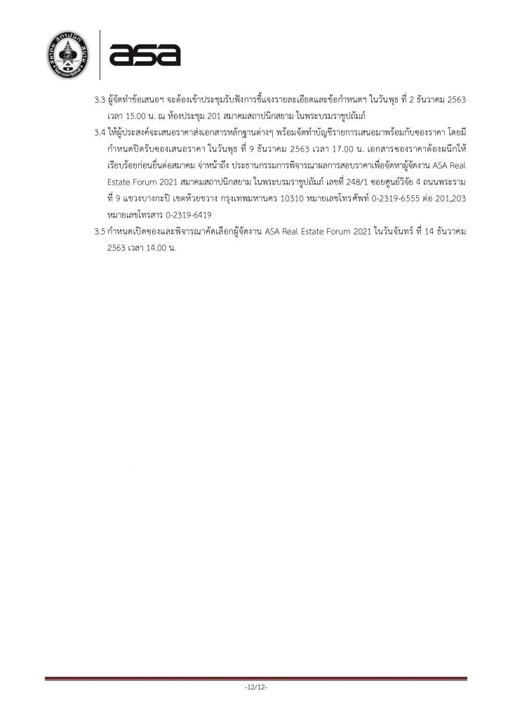 Home » News » ประกาศ จัดหาผู้จัดงาน ASA Real Estate Forum 2021 ด้วยวิธีสอบราคา