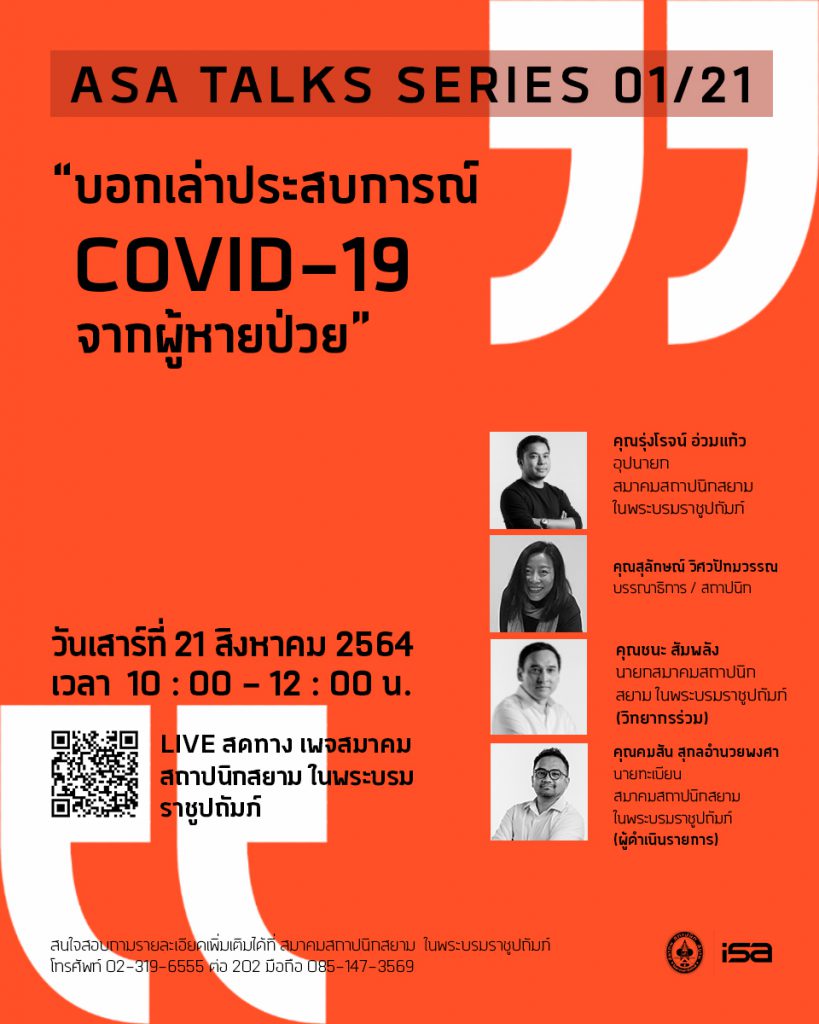 ASA  TALKS  SERIES  01/21 “บอกเล่าประสบการณ์  COVID-19  จากผู้หายป่วย”